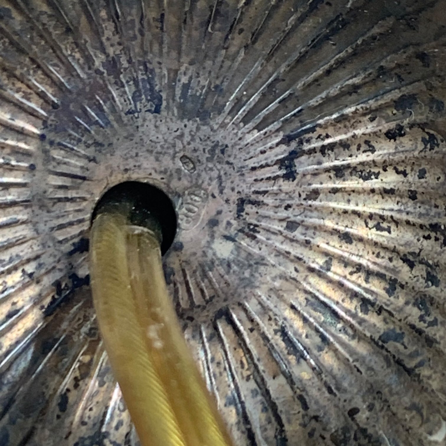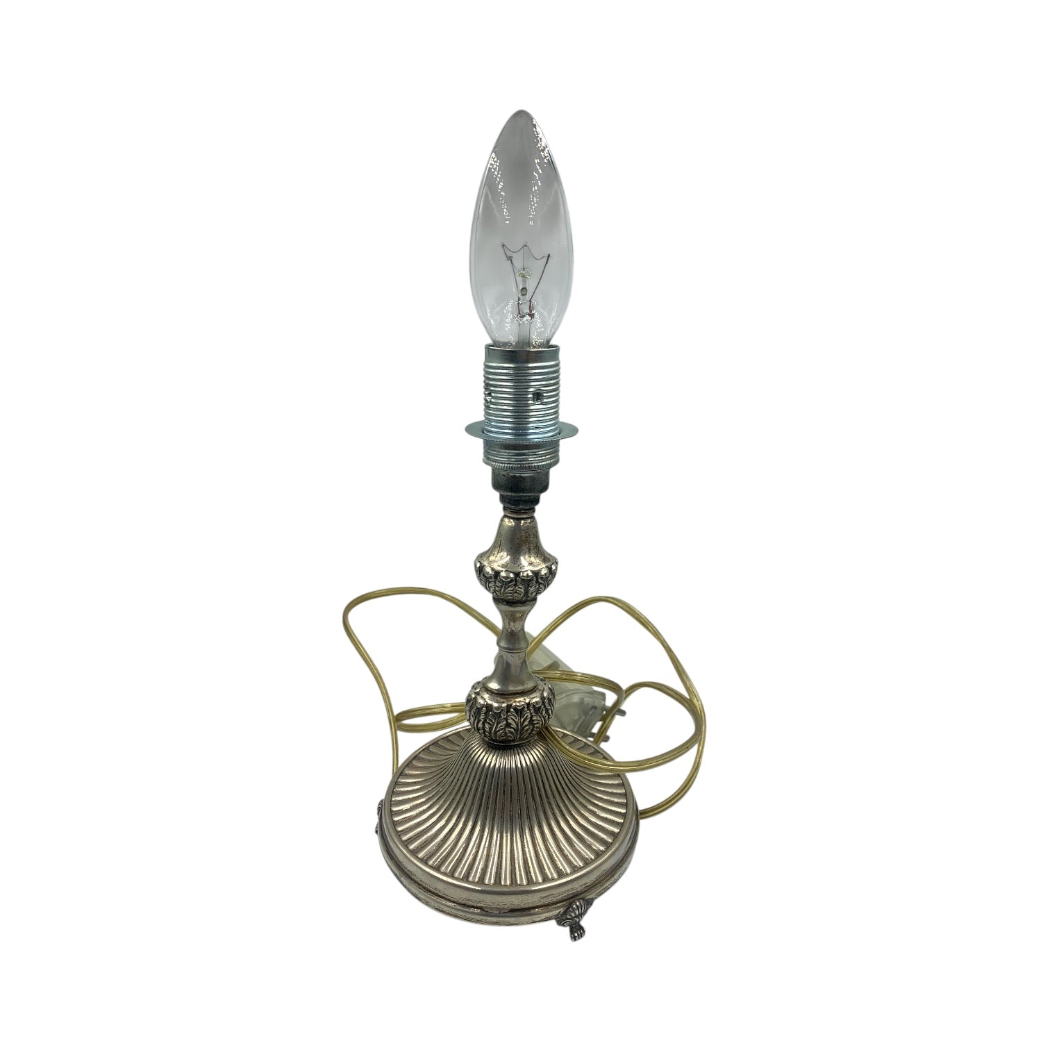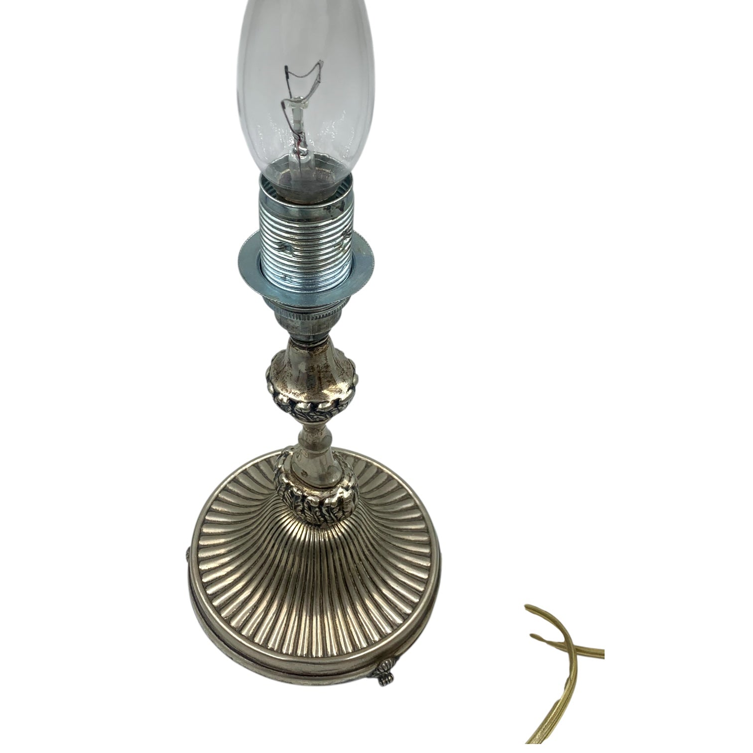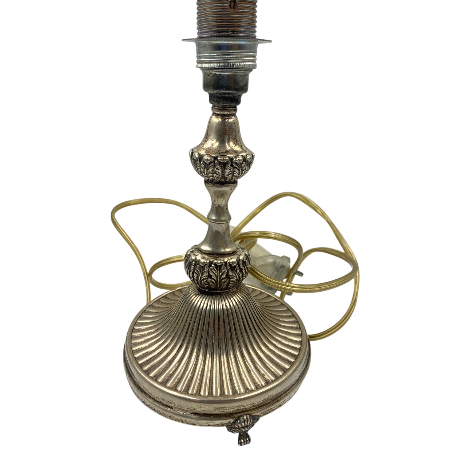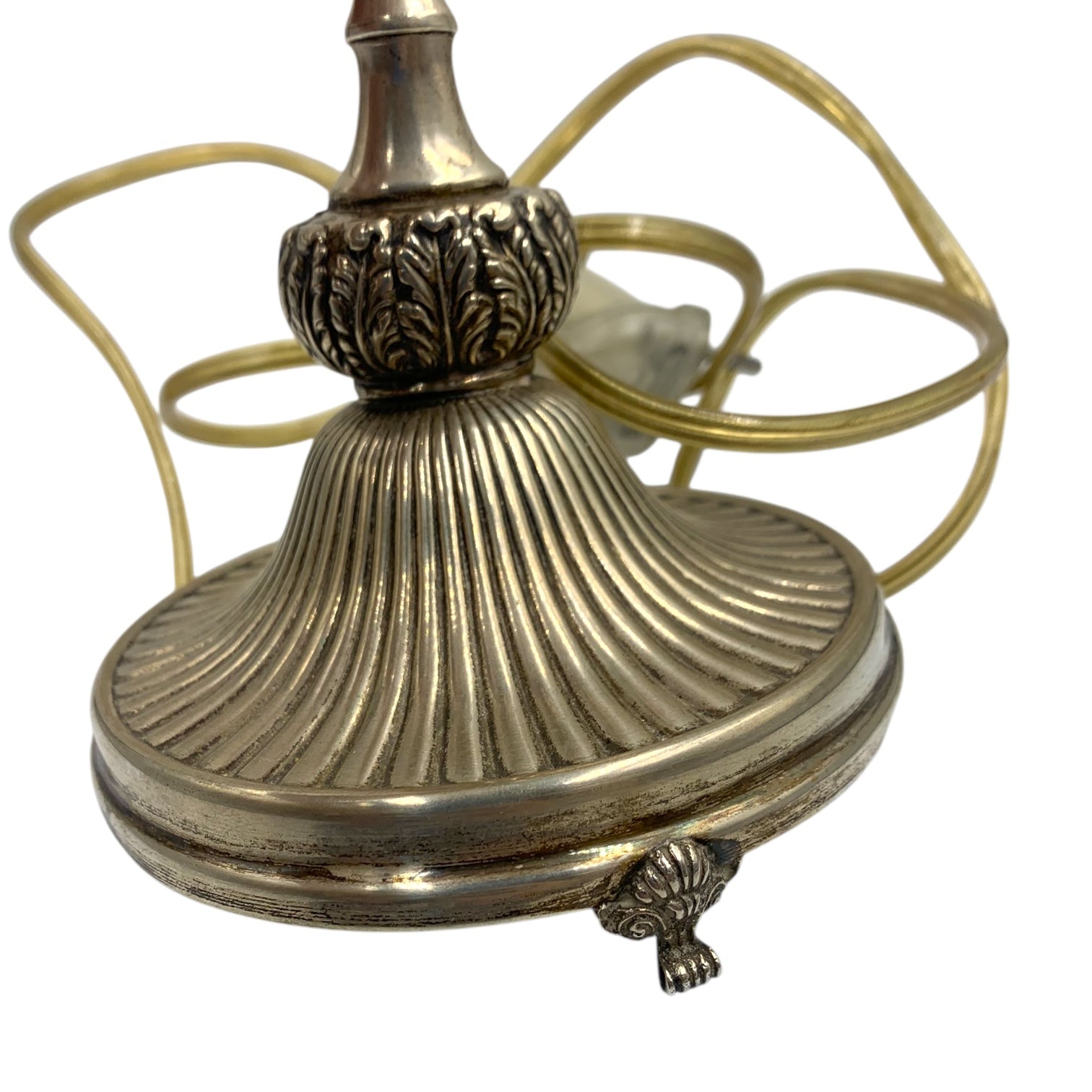 Abat Jour epoca con base in argento 800. Paralume non originale. Altezza 20 cm. Funzionante