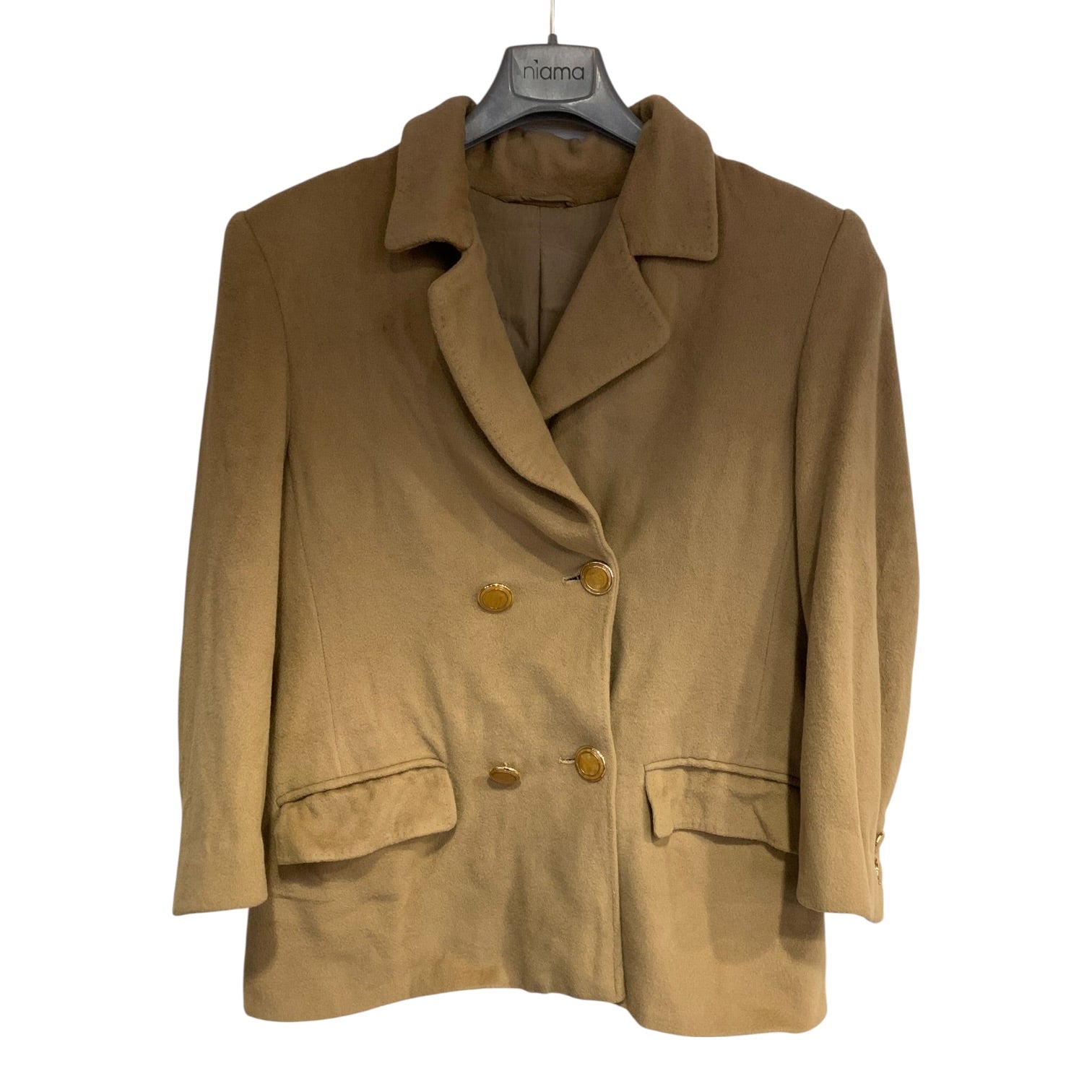 Blazer donna in cachemire colore cammello doppiopetto. Taglia 40/42