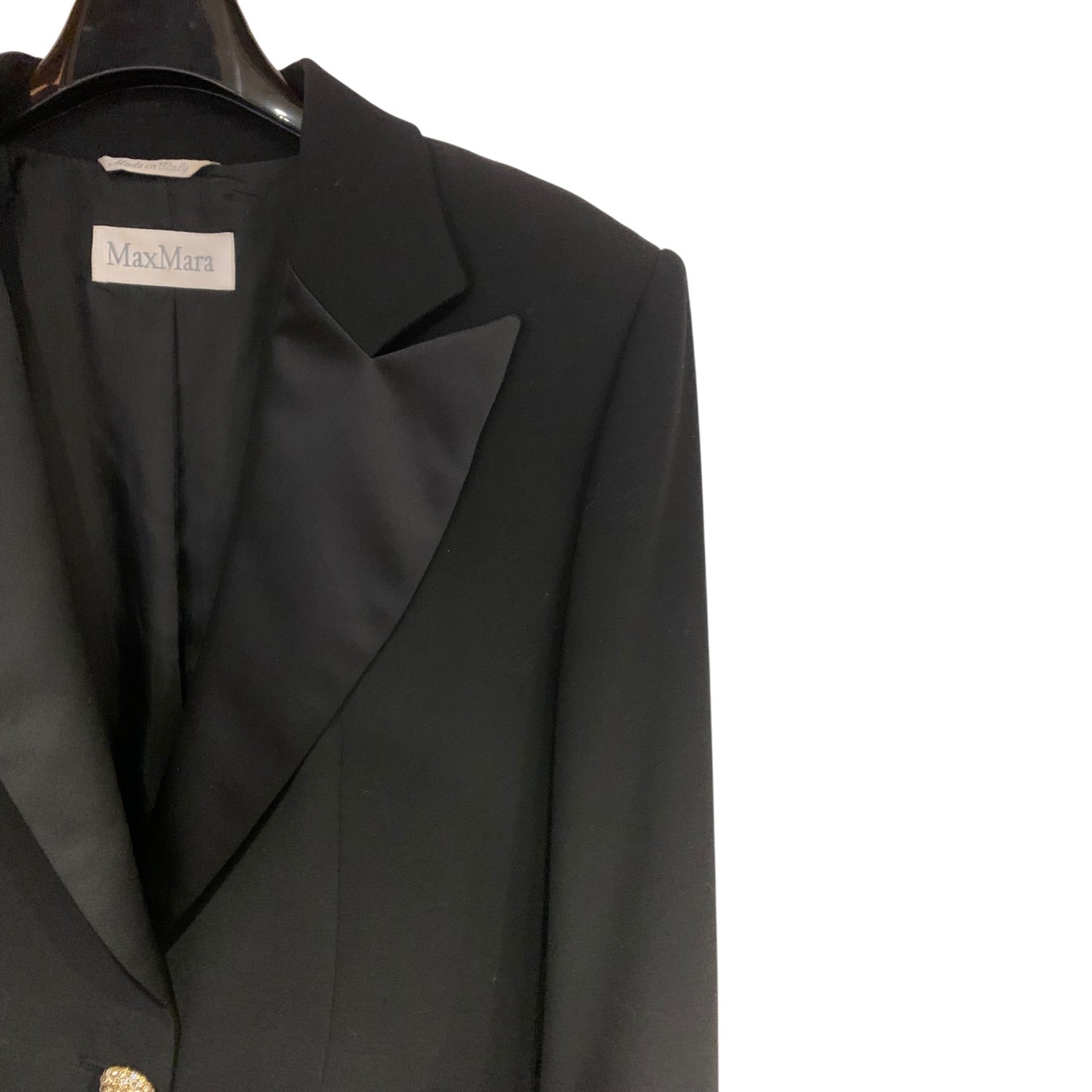 Blazer elegante donna marca Max Mara nero in lana con bottoni gioiello. Taglia 40/42 con spalline leggermente imbottite. Manca etichetta. Misure: spalle 43 cm, ascelle 49 cm lunghezza 79 cm