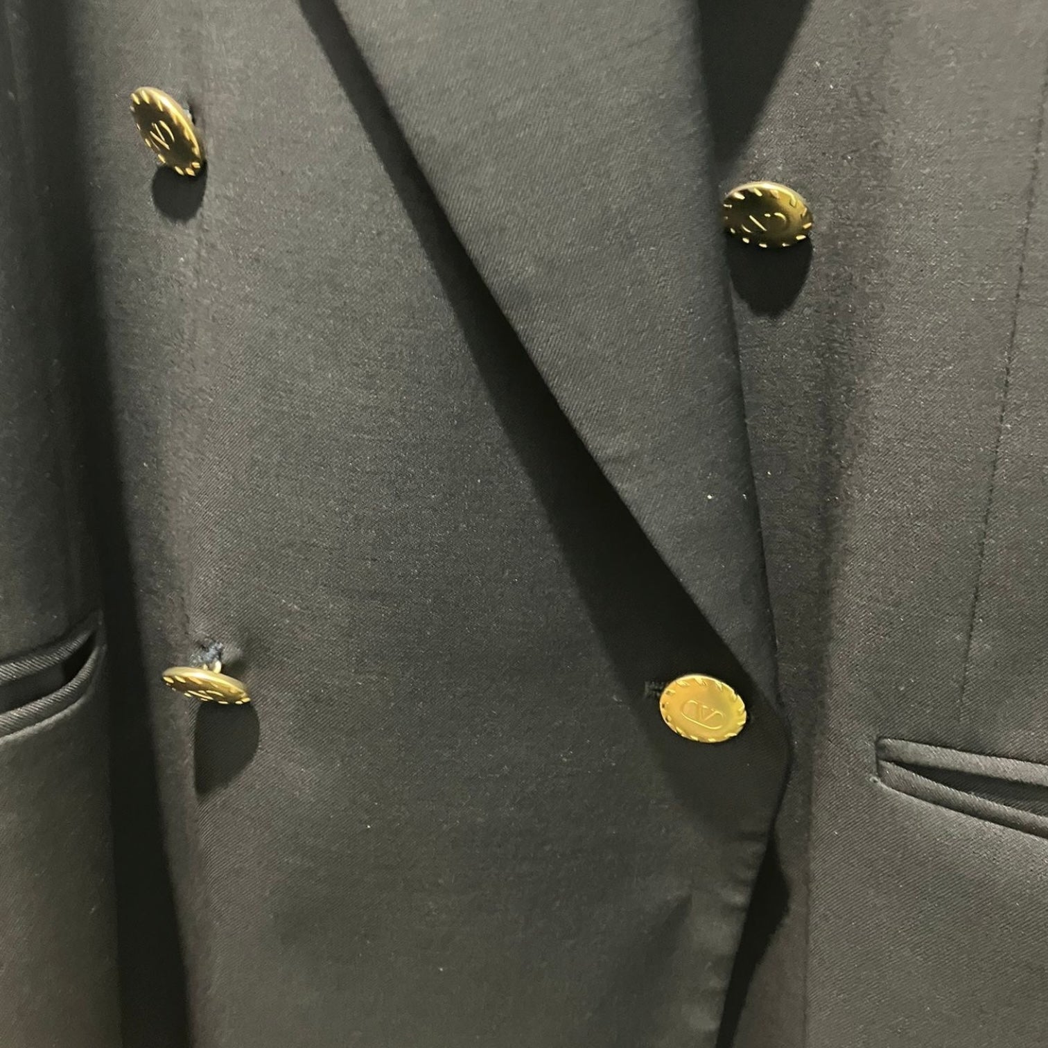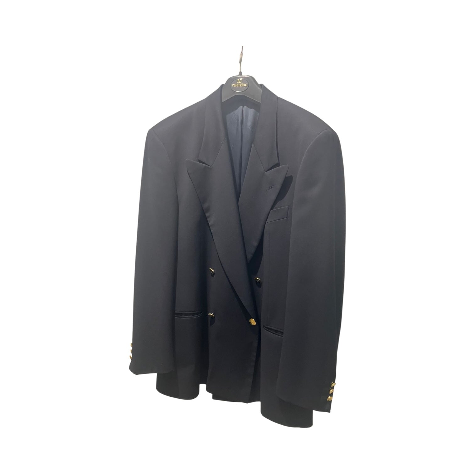 Giacca blazer uomo marca Valentino vintage. Doppiopetto, colore blu scuro in lana. Taglia 52.