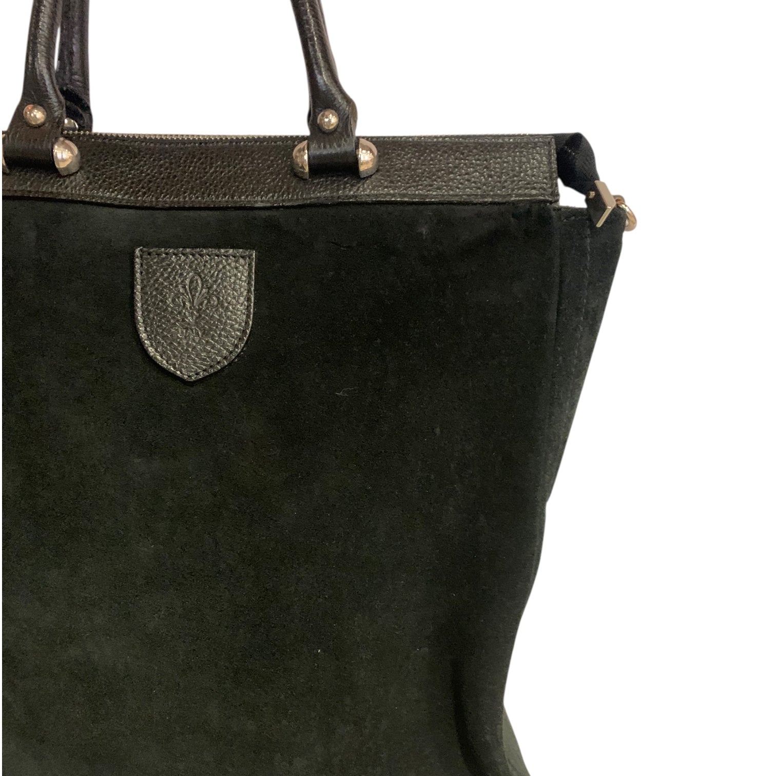 Borsa donna grande in pelle scamosciata nera. Dimensioni 39x24x17 cm