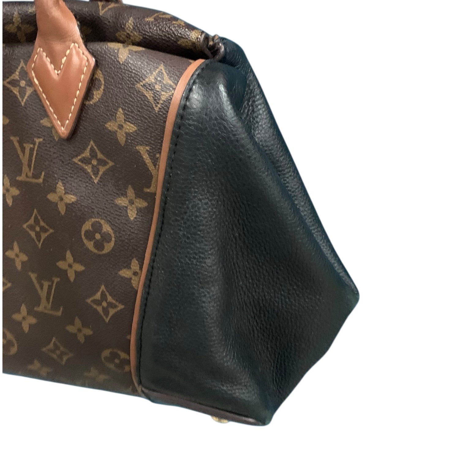 Borsa a mano vintage Louis Vuitton in pelle nero e monogram marrone, interno scamosciato. Dimensioni: 39x25x15 cm