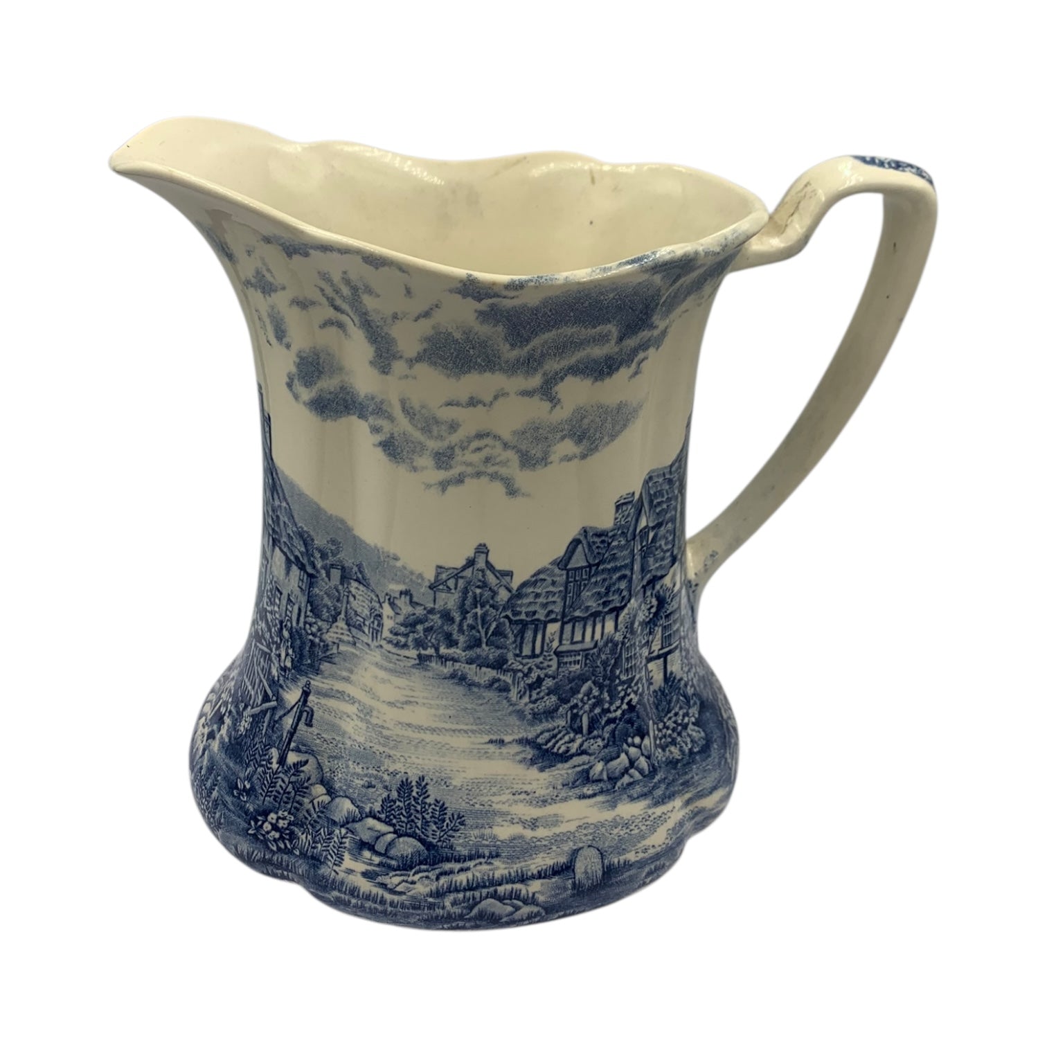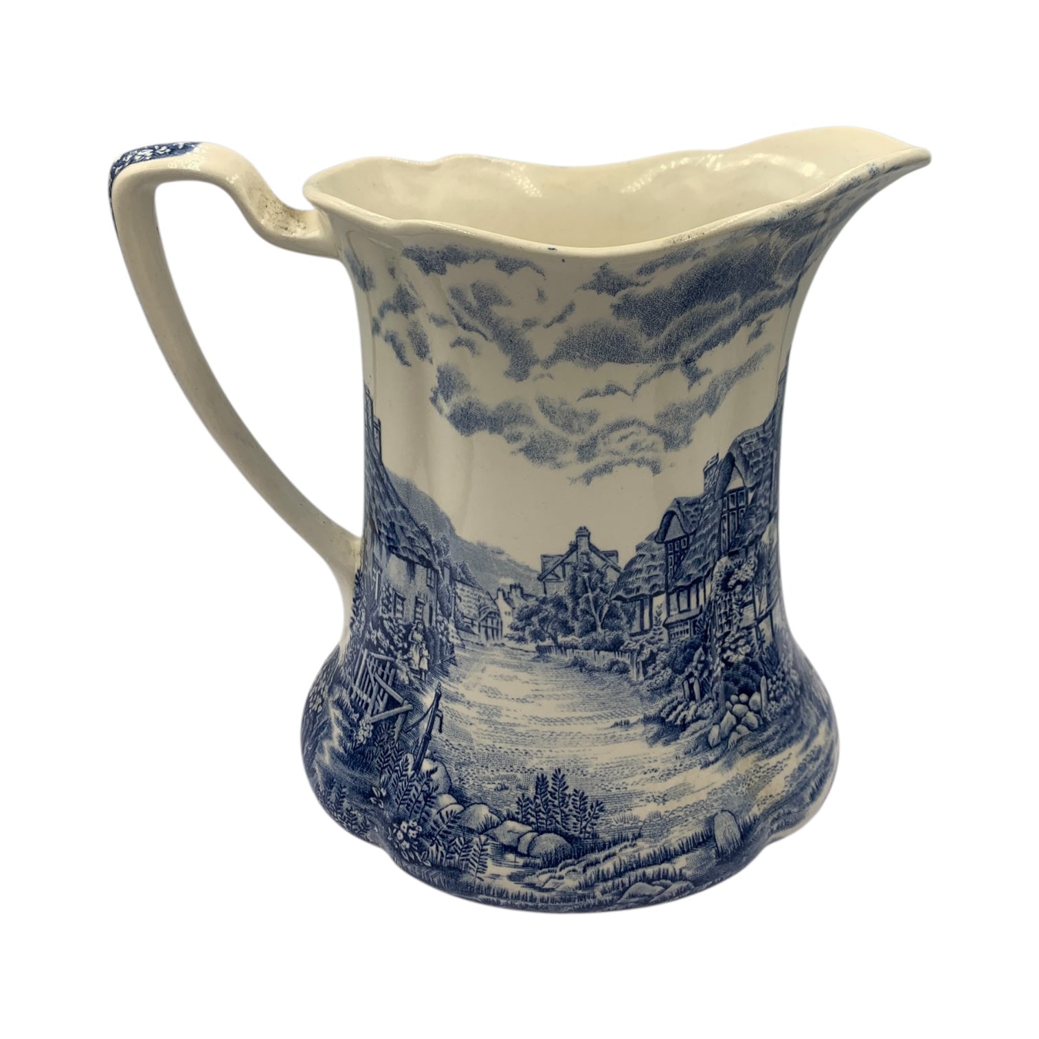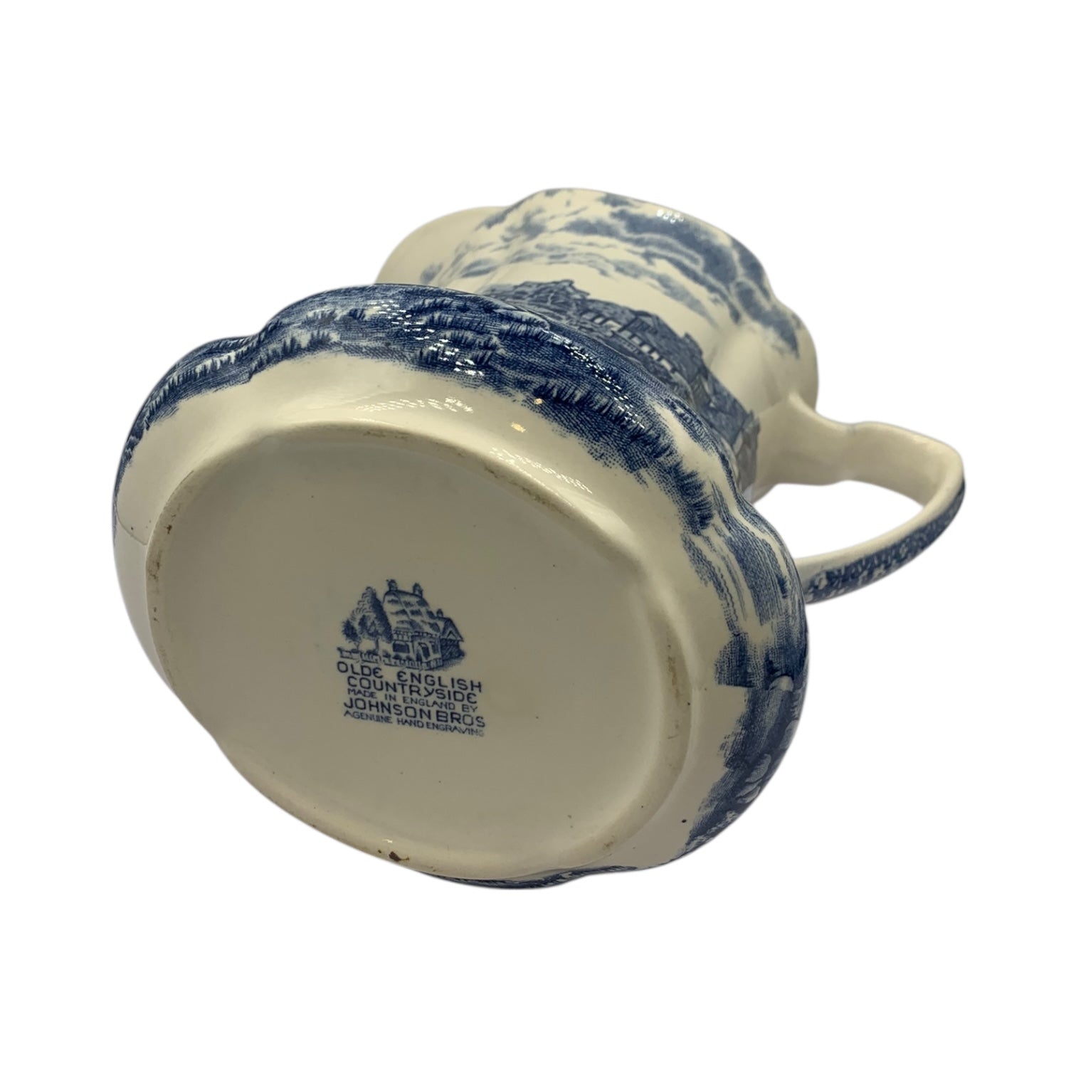 Brocca epoca ceramica inglese firmata Johnson Bros decoro blu. Altezza 17 cm