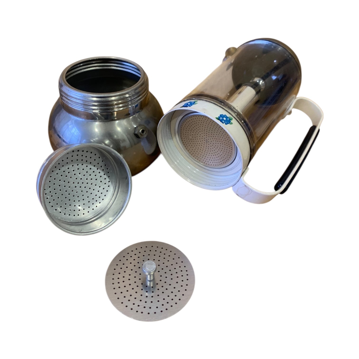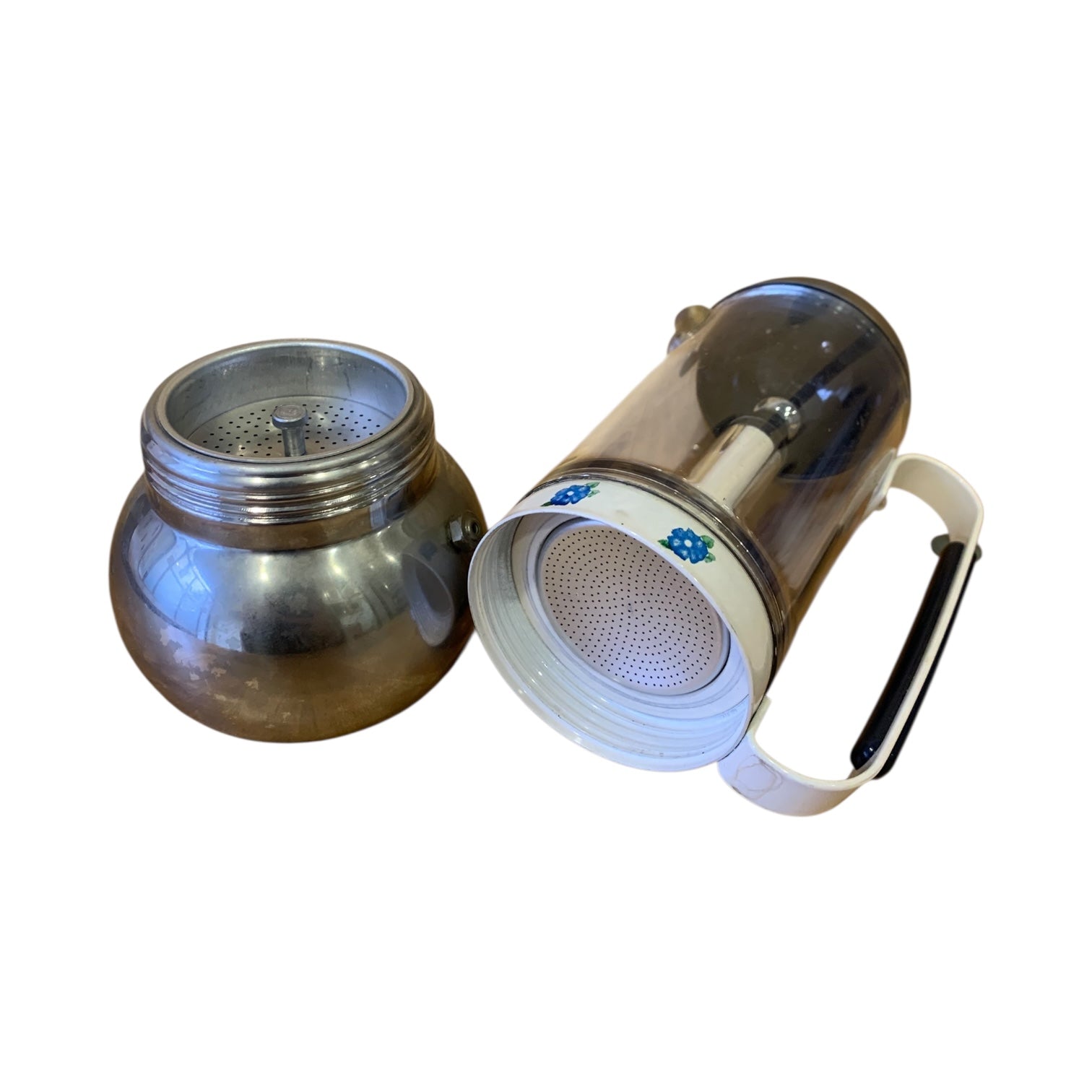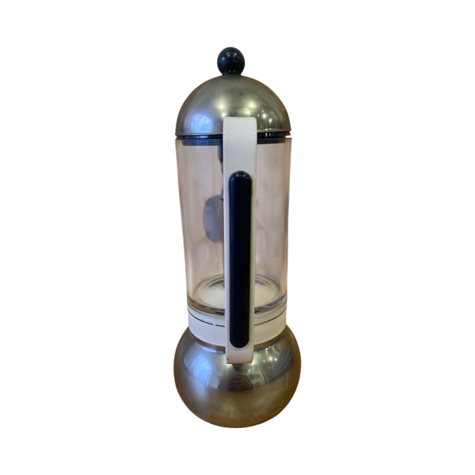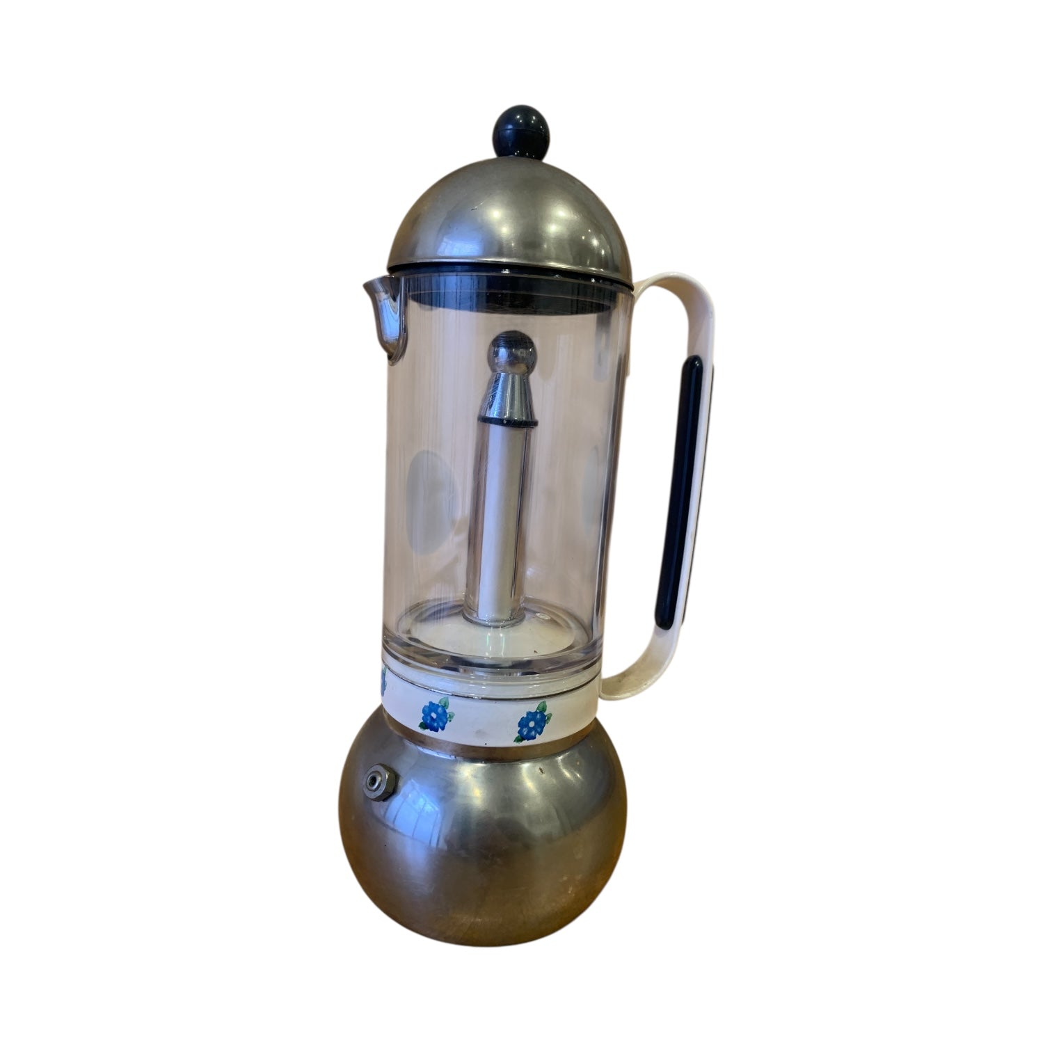 Caffettiera vintage anni 80 in metallo e plexiglas.