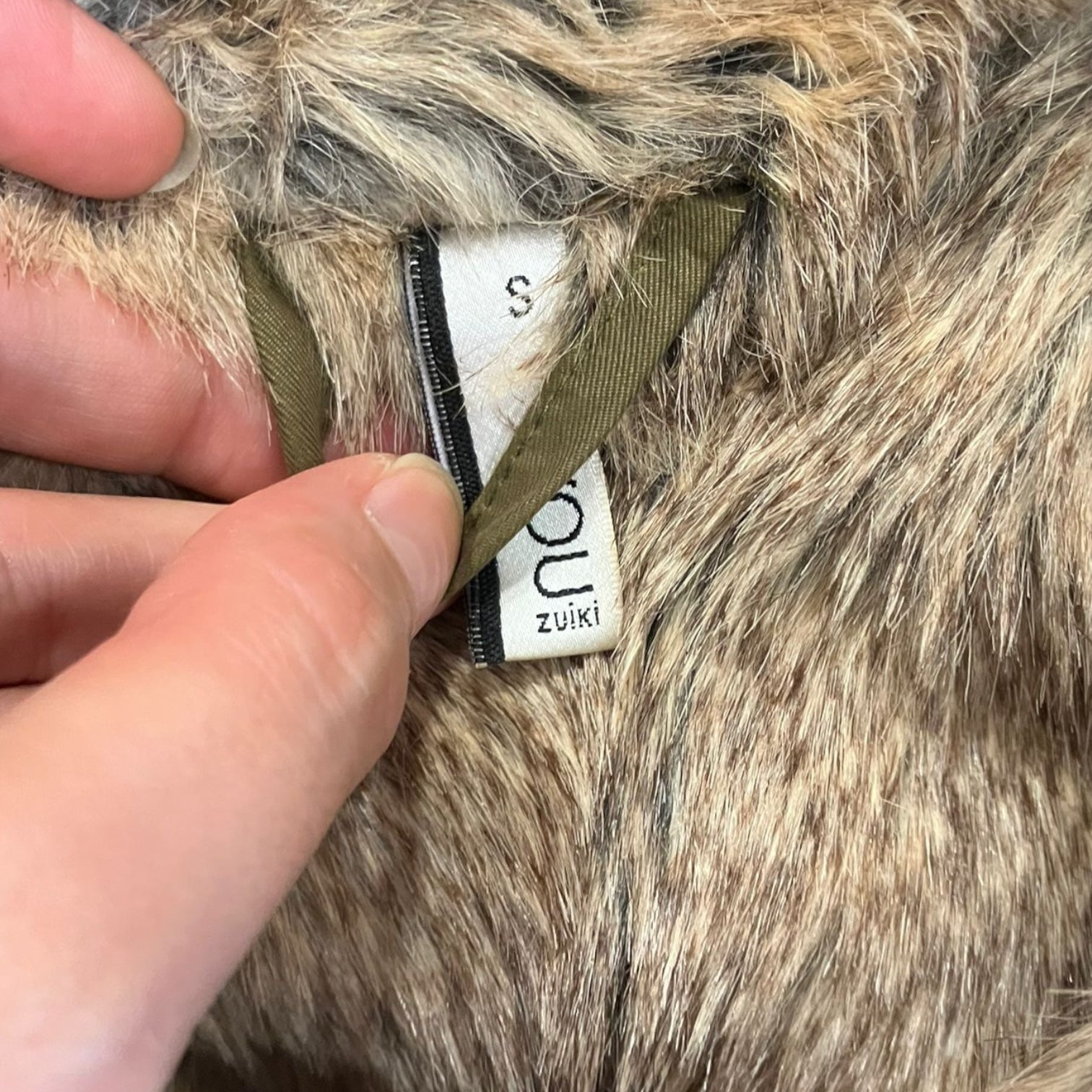 Cappotto parka da donna marca Zuiki verde militare con pellicciotto sintetico. Taglia S