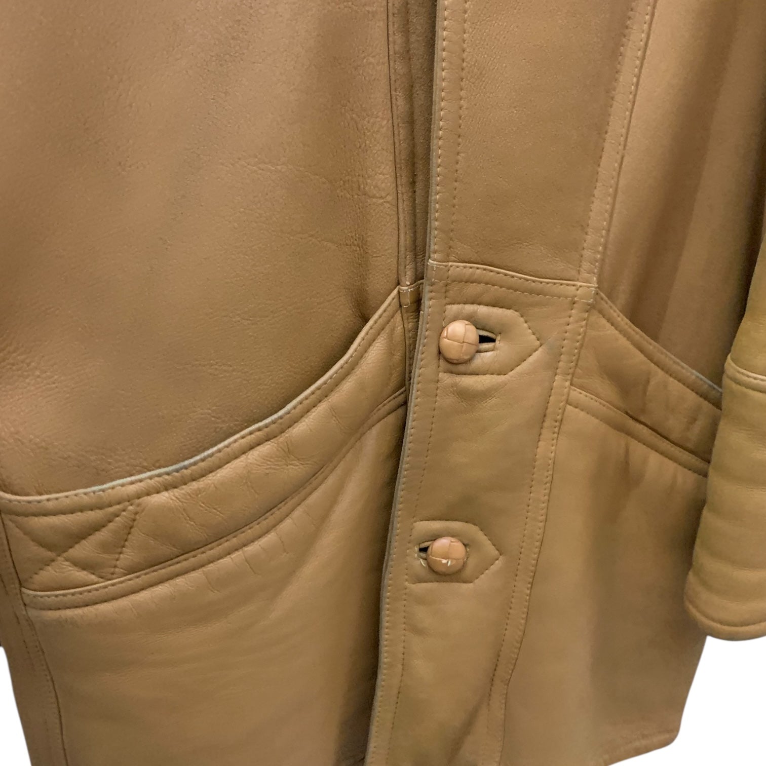 Cappotto vintage montone in pelle marrone interno pecora bianco. Taglia 48
