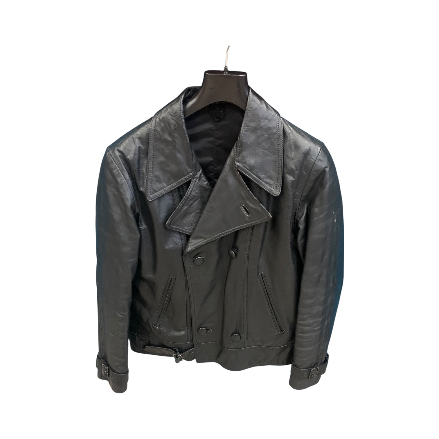 Giacca chiodo vintage in pelle nero doppiopetto. Taglia L