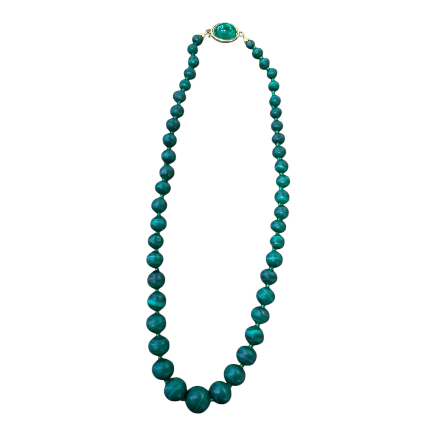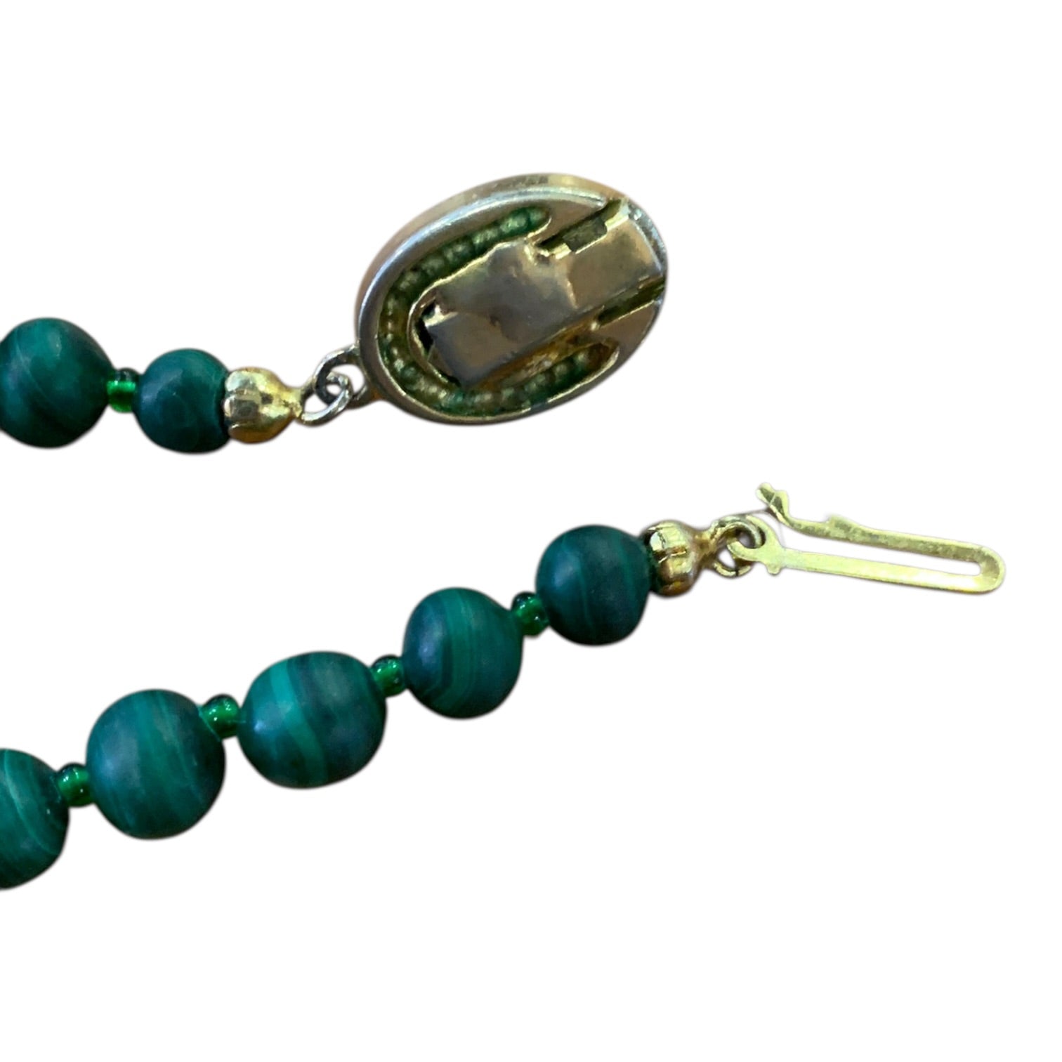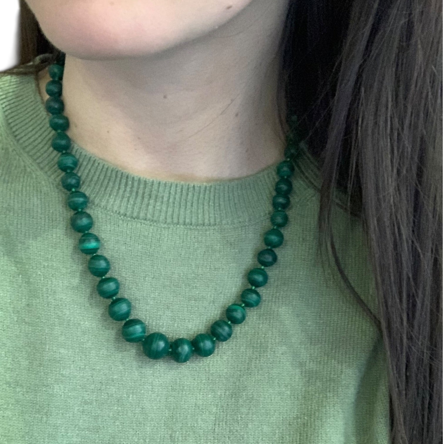 Collana donna vintage con pietre dure malachite verde. Lunghezza 47 cm