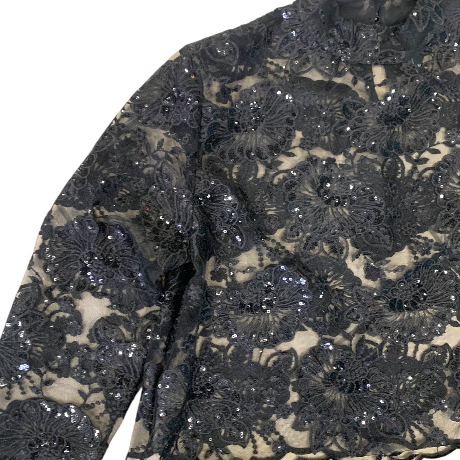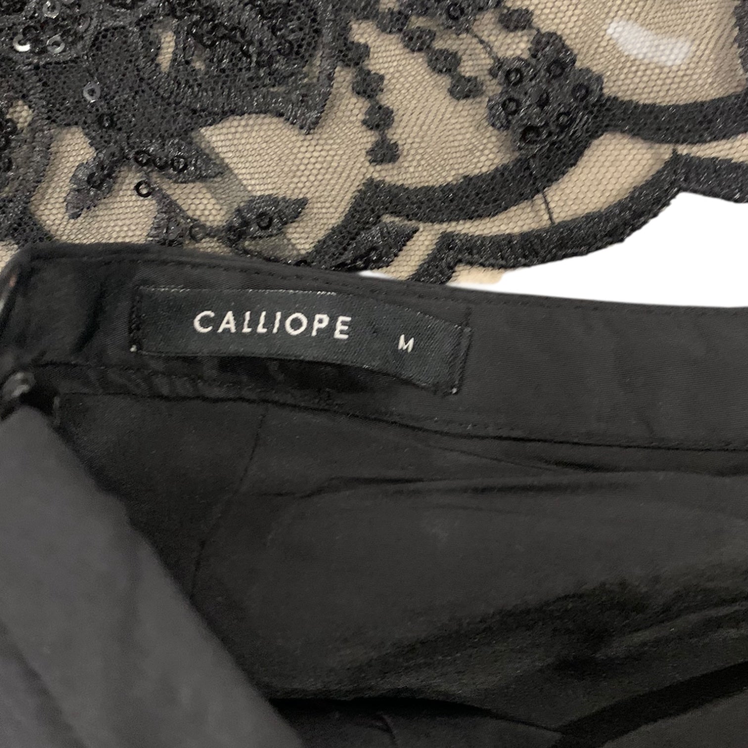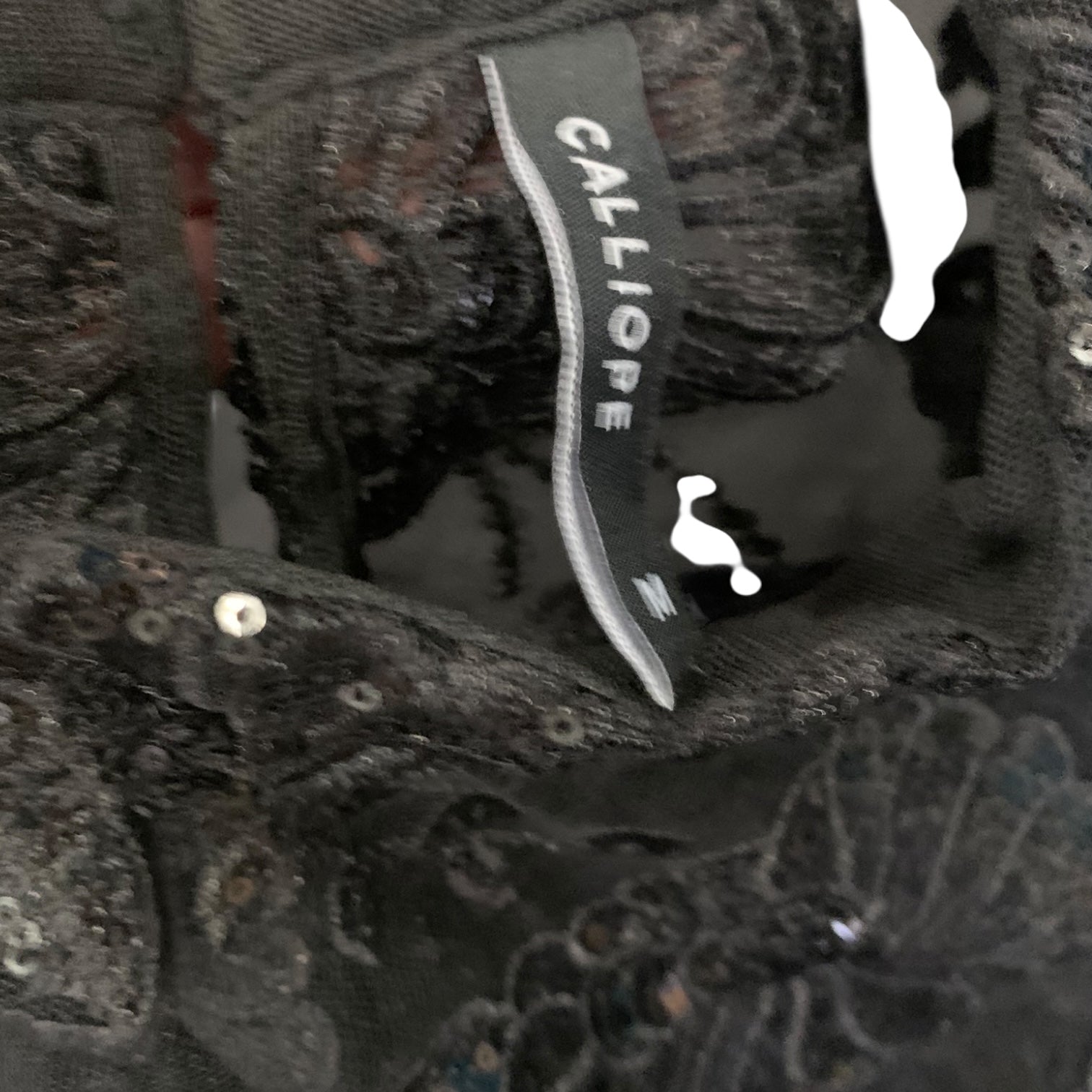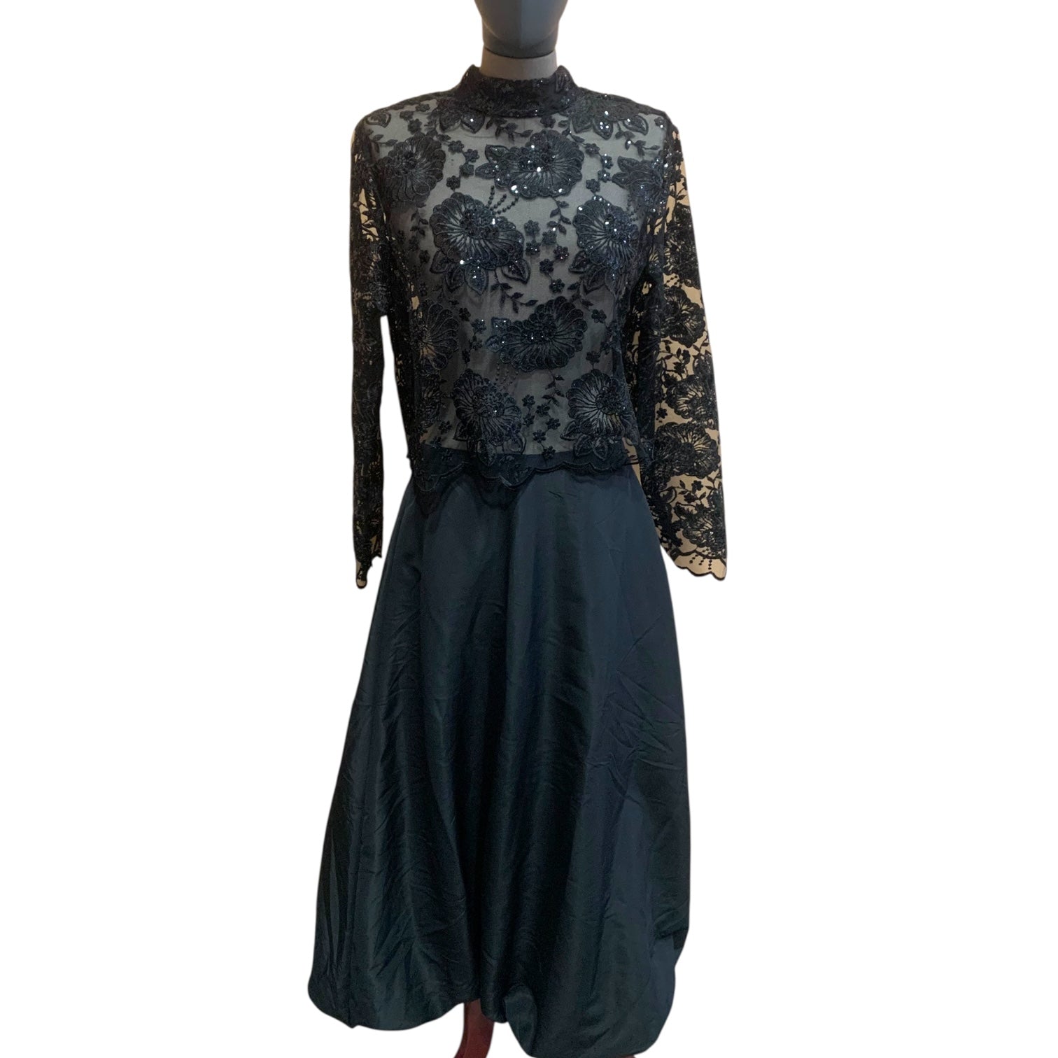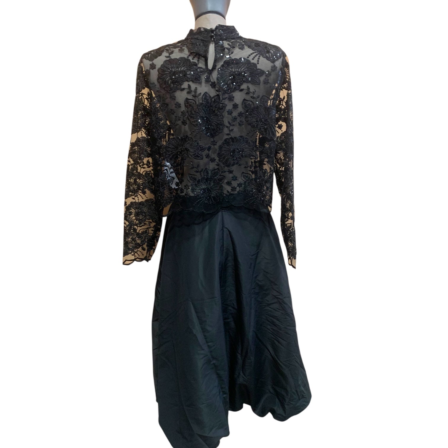 Completo donna Calliope composta da maglia in pizzo e paillettes e gonna a campana colore nero. Taglia M