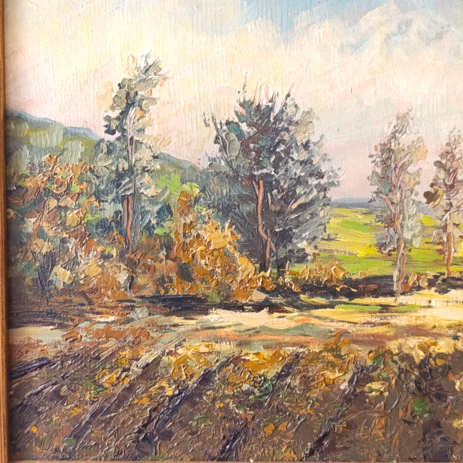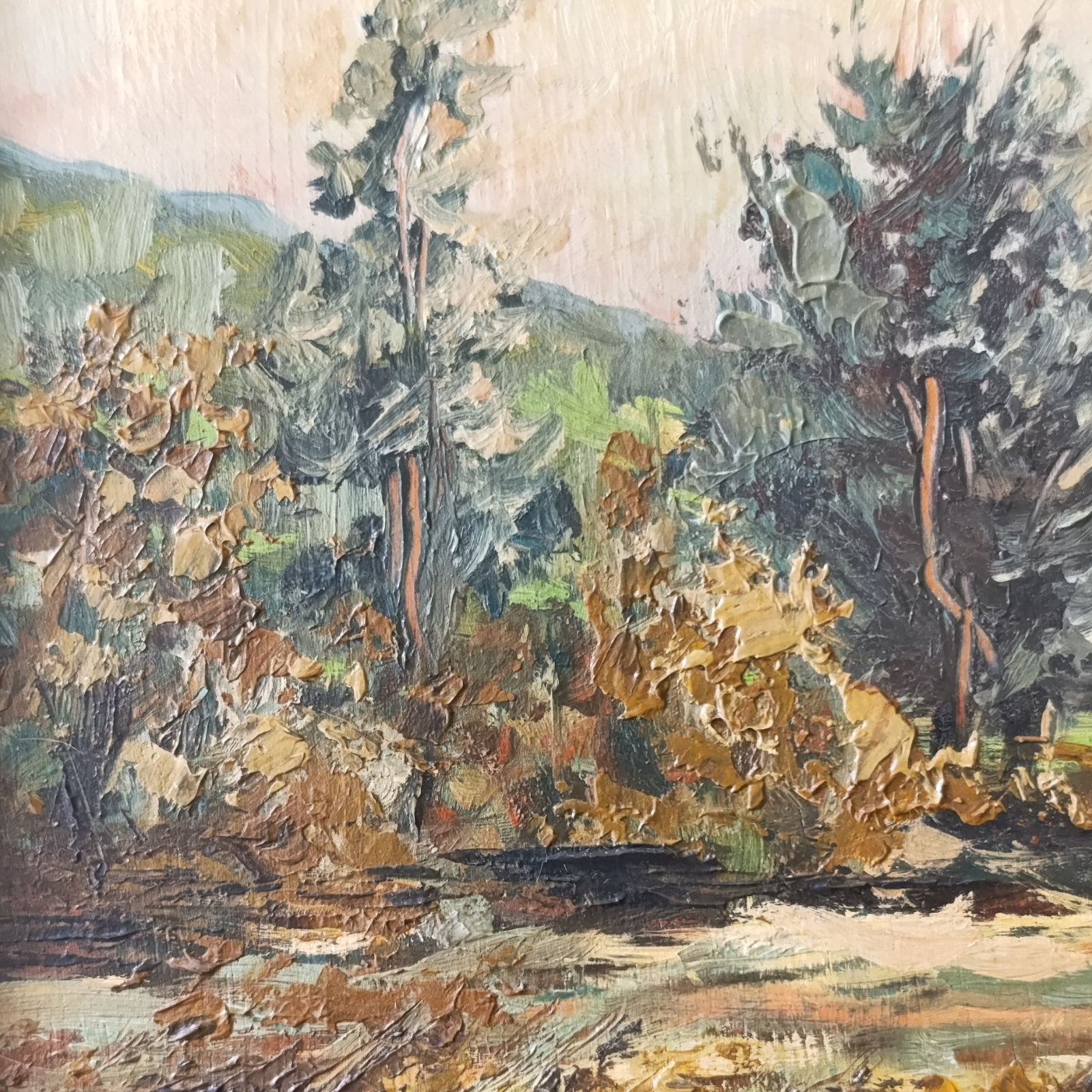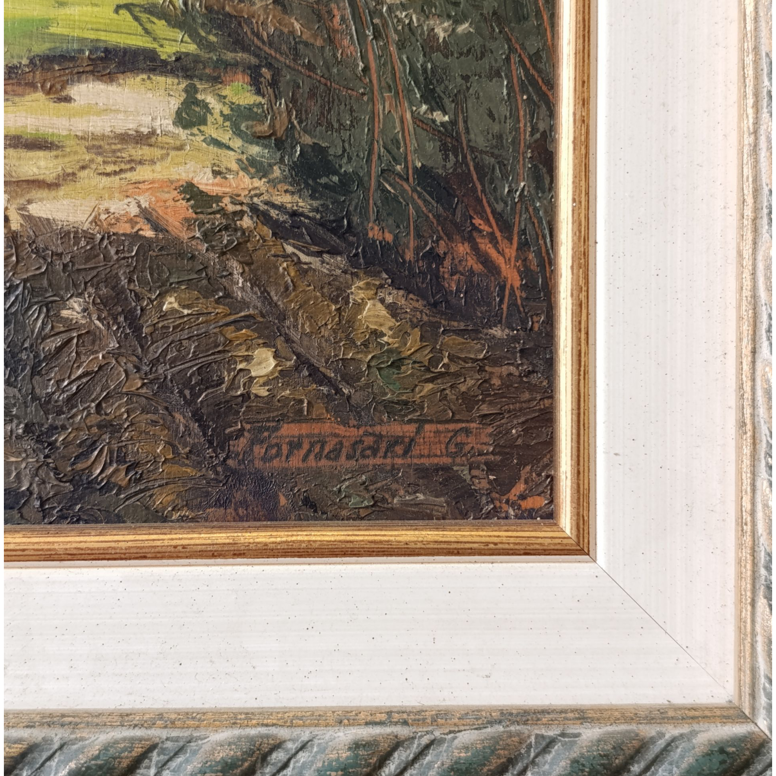 Dipinto Olio Su Tela di inizio 900, di G. Fornasari, raffigurante un paesaggio alberato