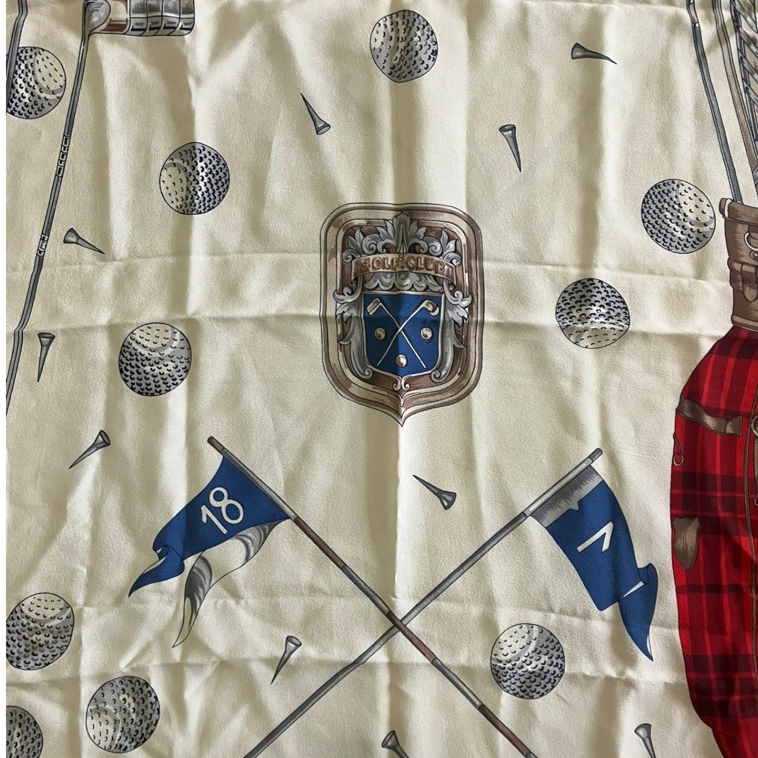Foulard vintage marca Celine Paris seta fantasia Golf Club. Dimensioni: 78x78 cm. Presenta alcuni segni del tempo.