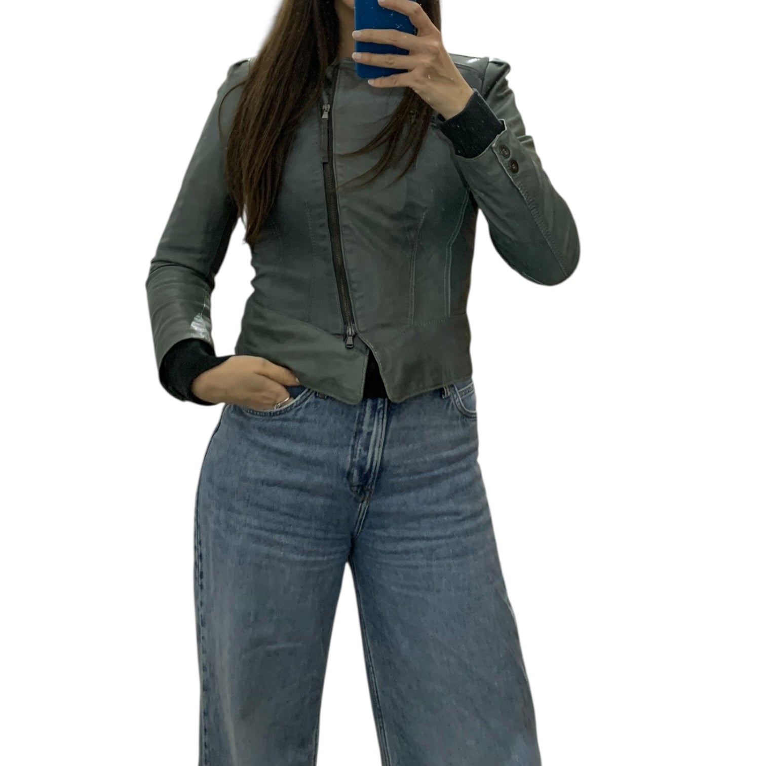 Giacca donna in pelle marca Imperial. Taglia M ma veste stretto.