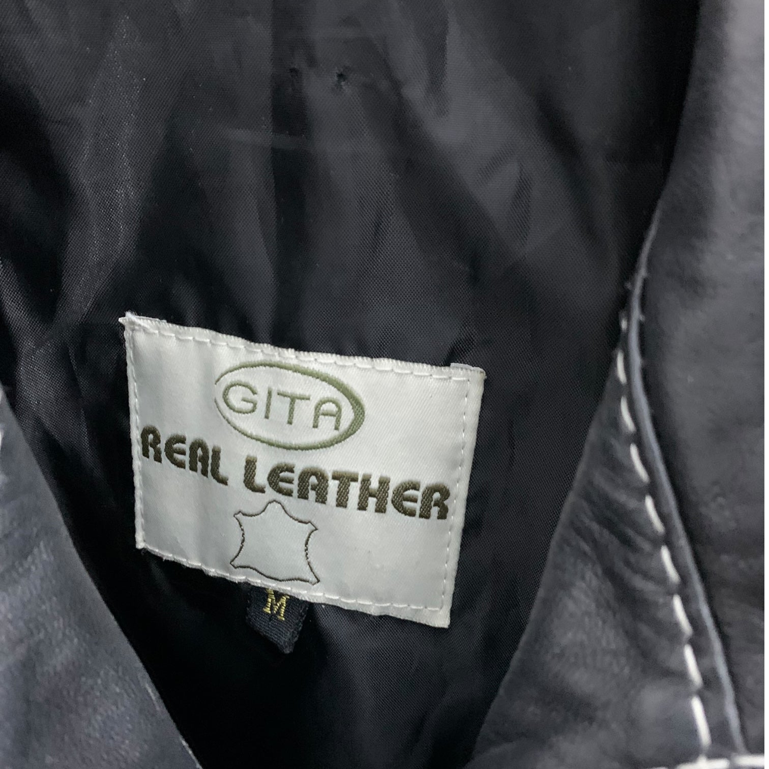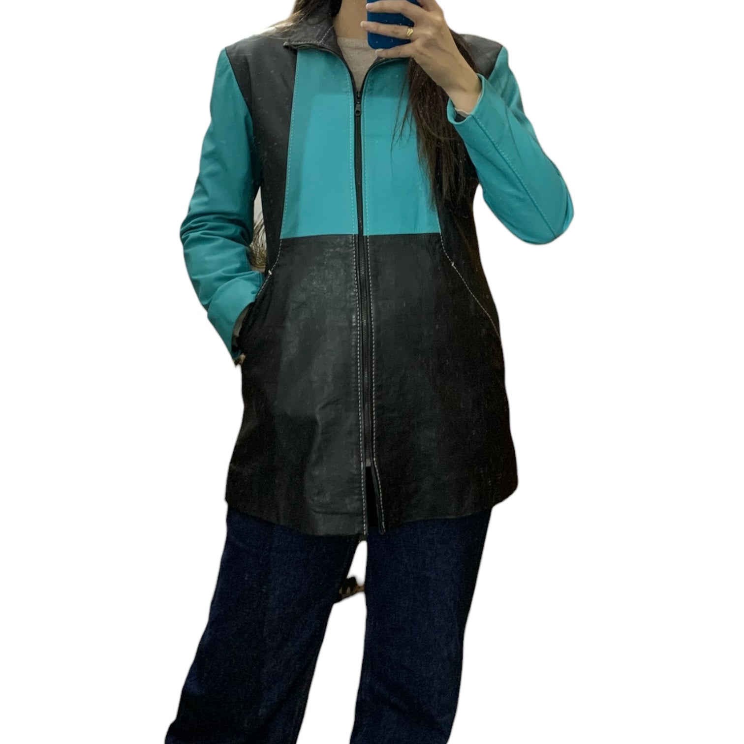 Giacca donna in vera pelle colore nero e azzurro. Taglia M