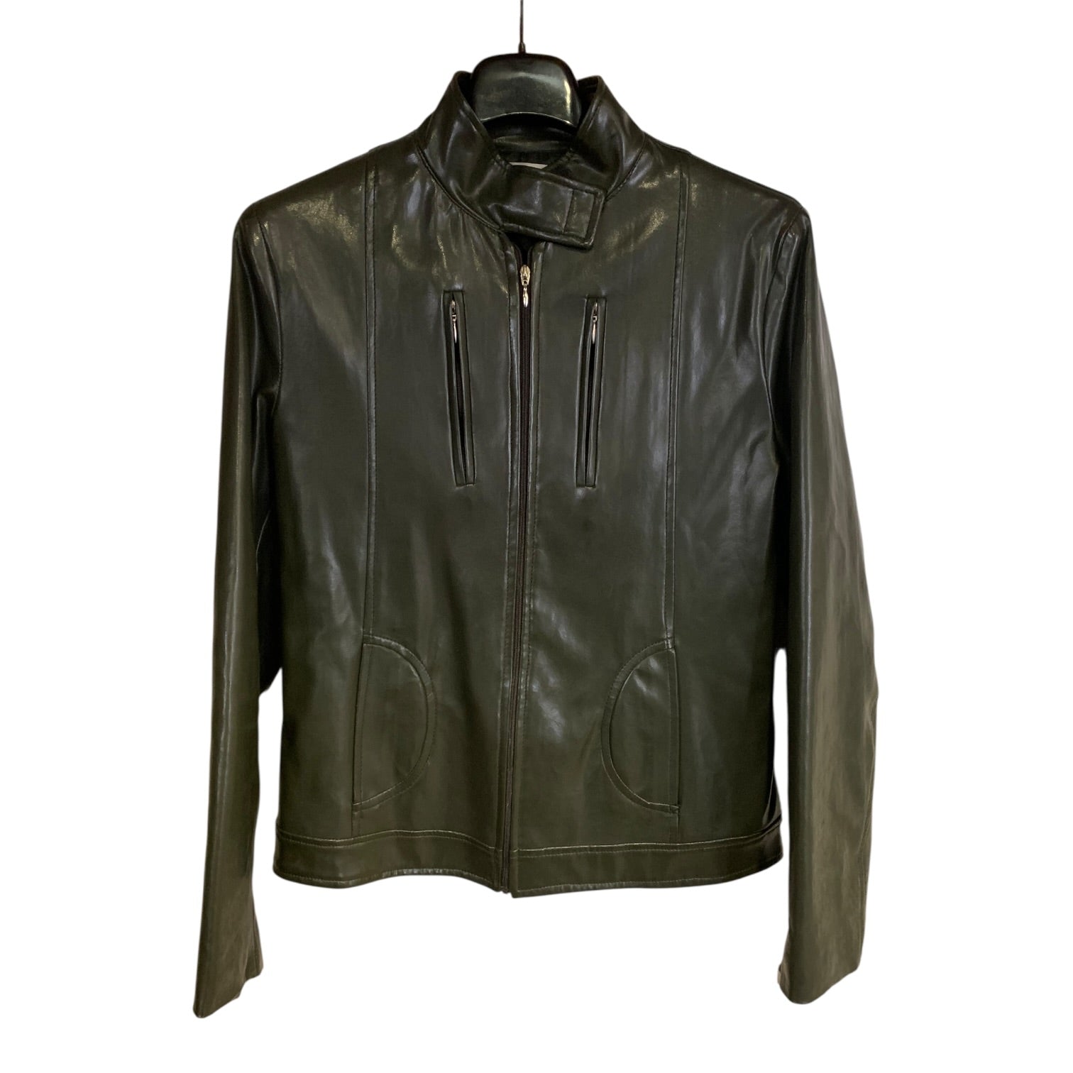Giacca donna in pelle verde marca Conbipel. Taglia etichetta M ma veste piccolo. Dimensioni spalle 40 cm, ascelle 44 cm, lunghezza 61 cm