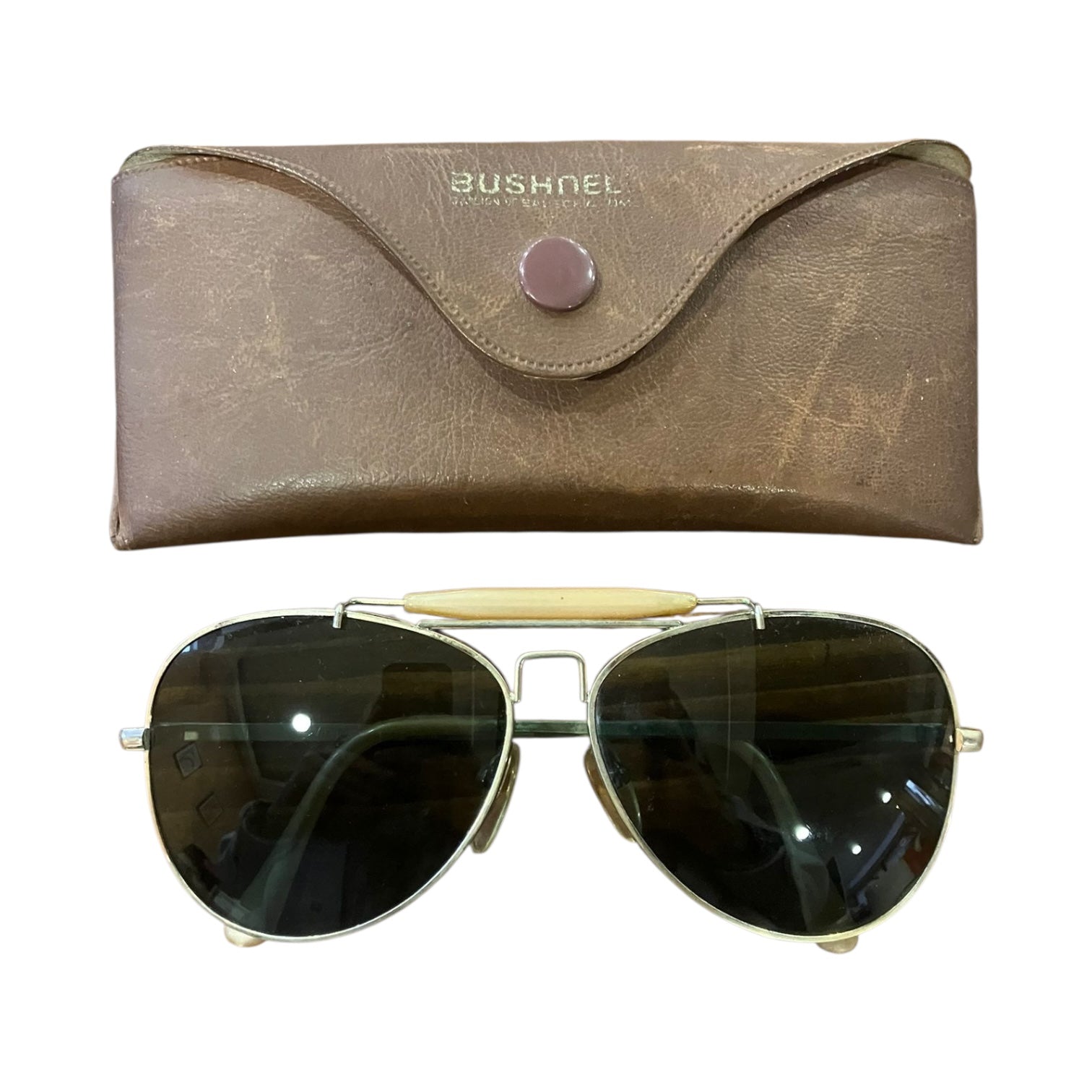 Occhiali da sole vintage marca Bushnell tipo aviatore.