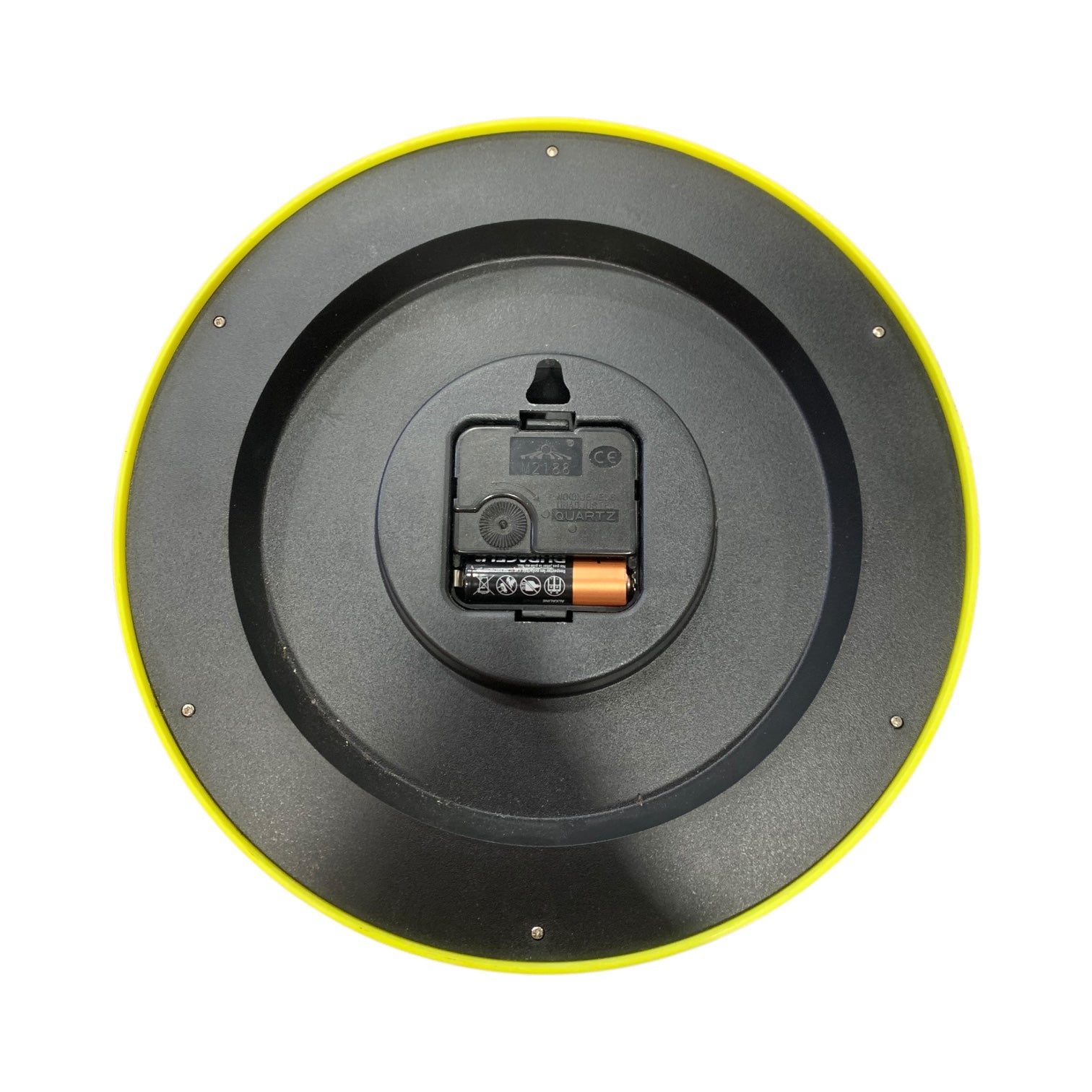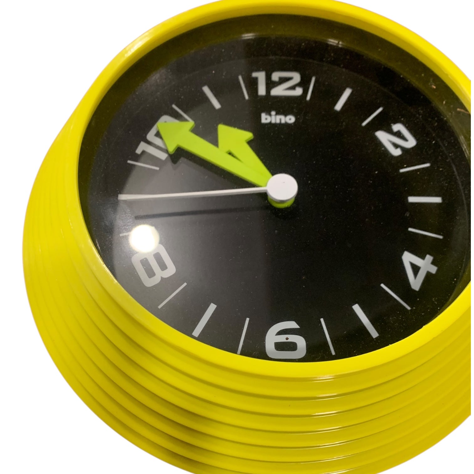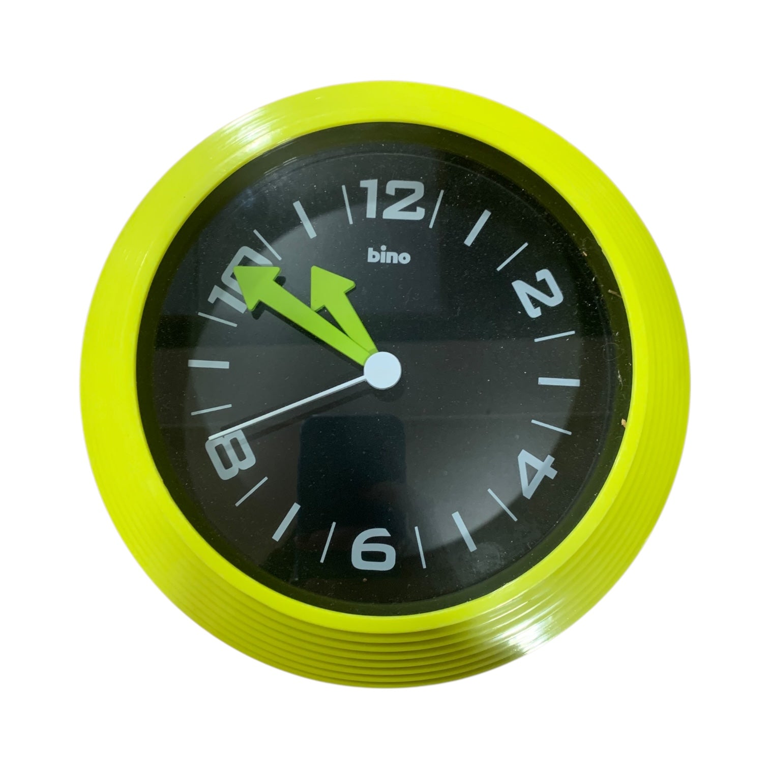 Orologio da muro vintage anni 80 Space Age giallo fosforescente.