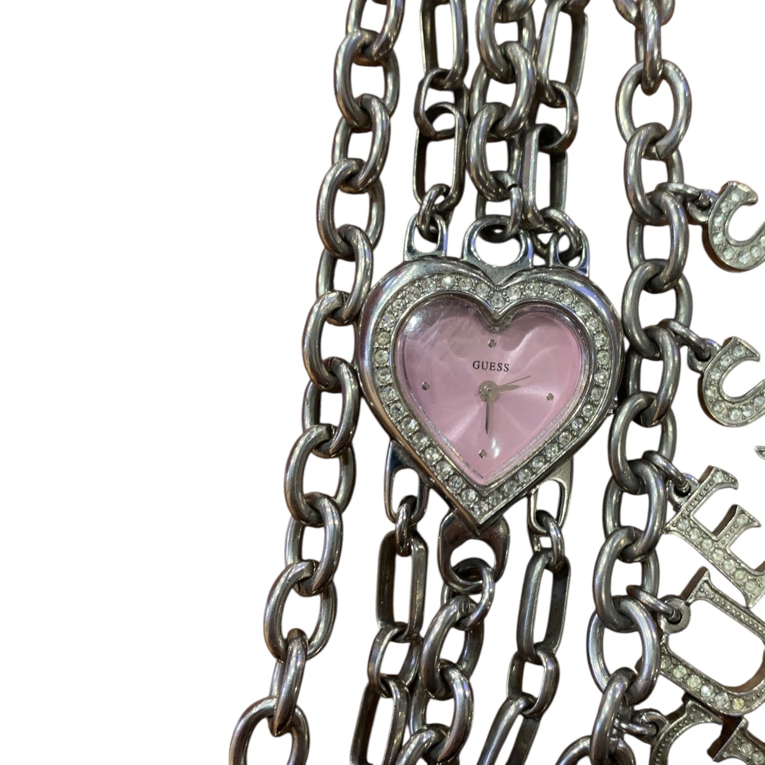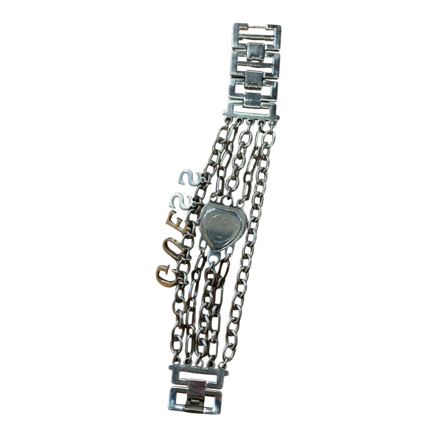 Bracciale Orologio marca Guess cromato con ciondoli. Movimento al quarzo, batteria da sostituire.