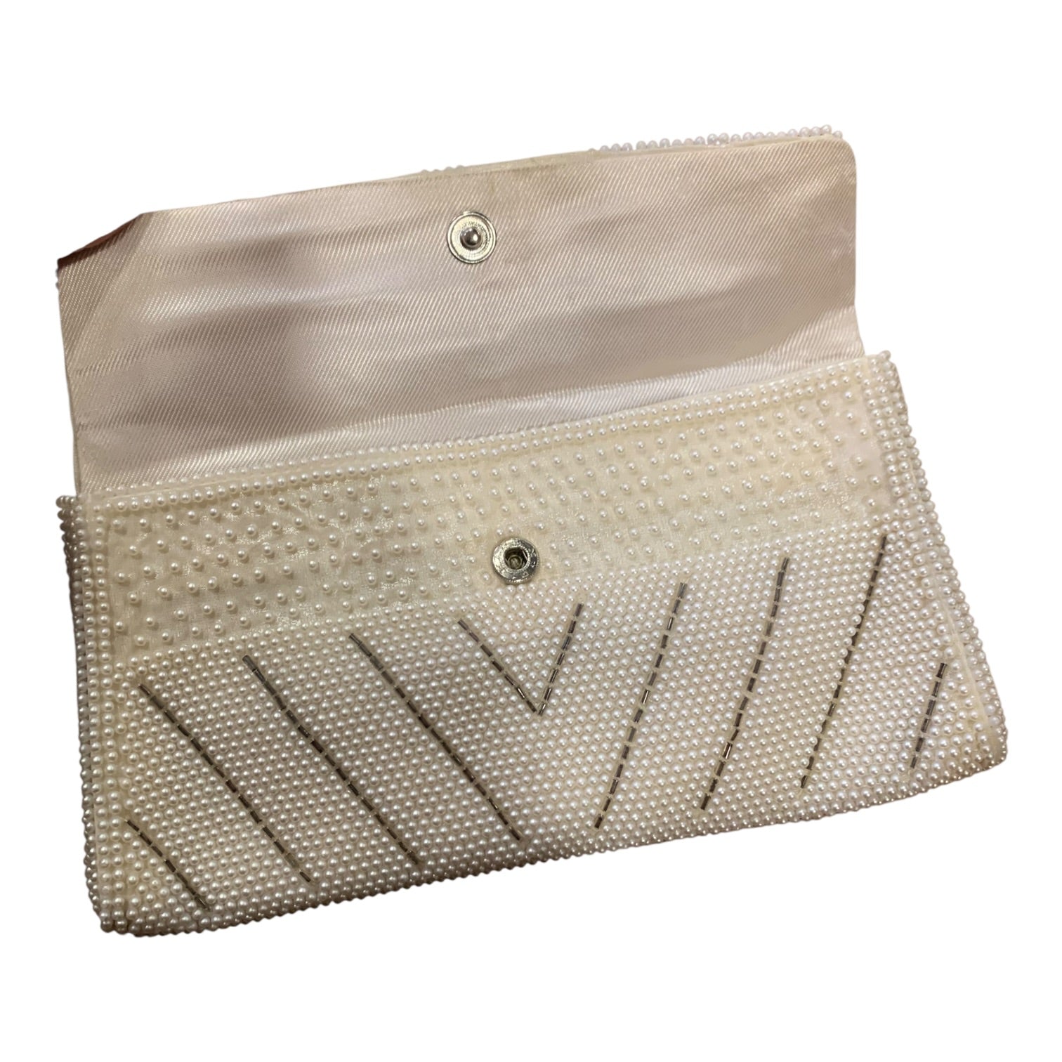 Porta foglio vintage anni 50 perline bianche. Dimensioni 20x10 cm