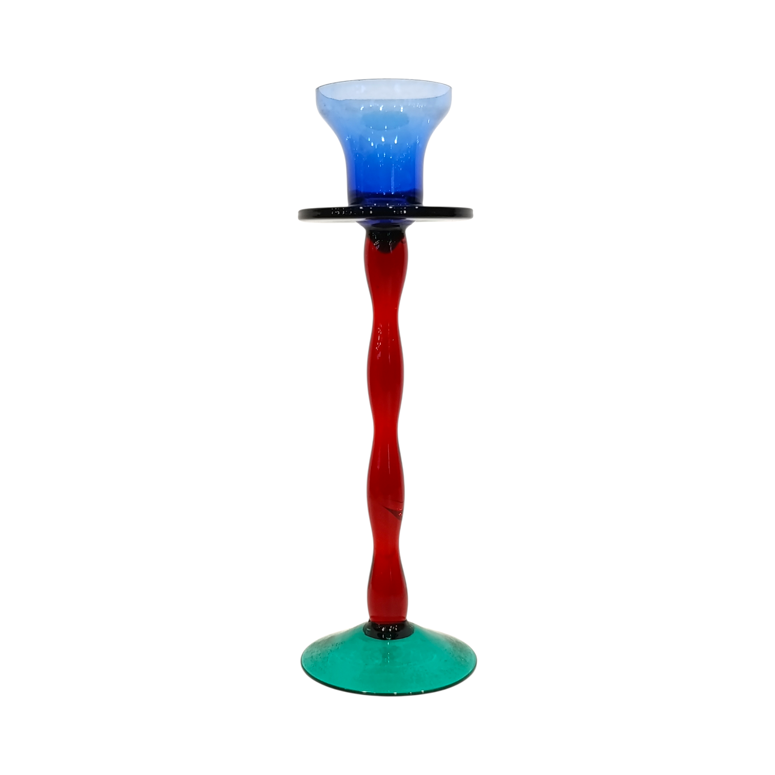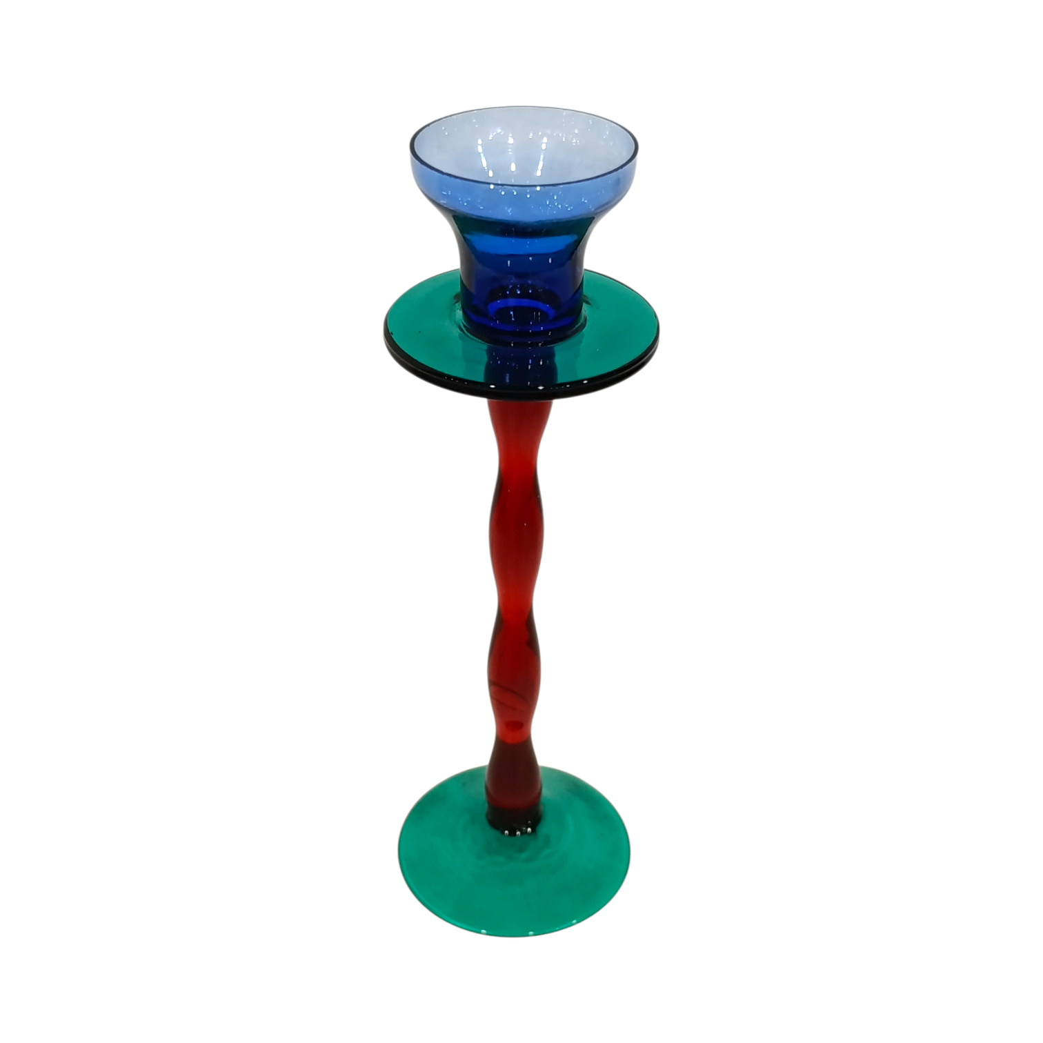 Portacandela in vetro colorato rosso, verde, blu, altezza 22 cm