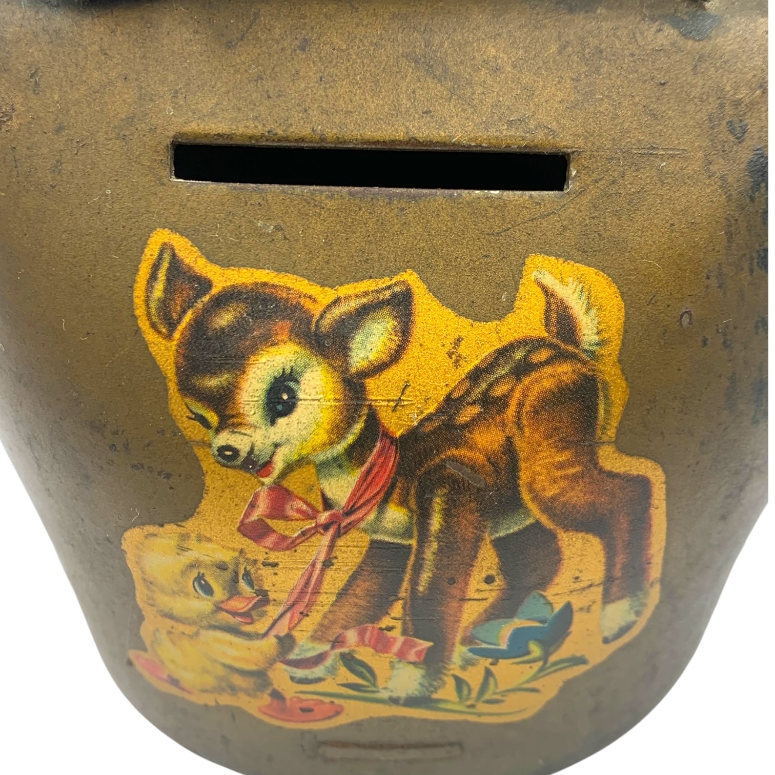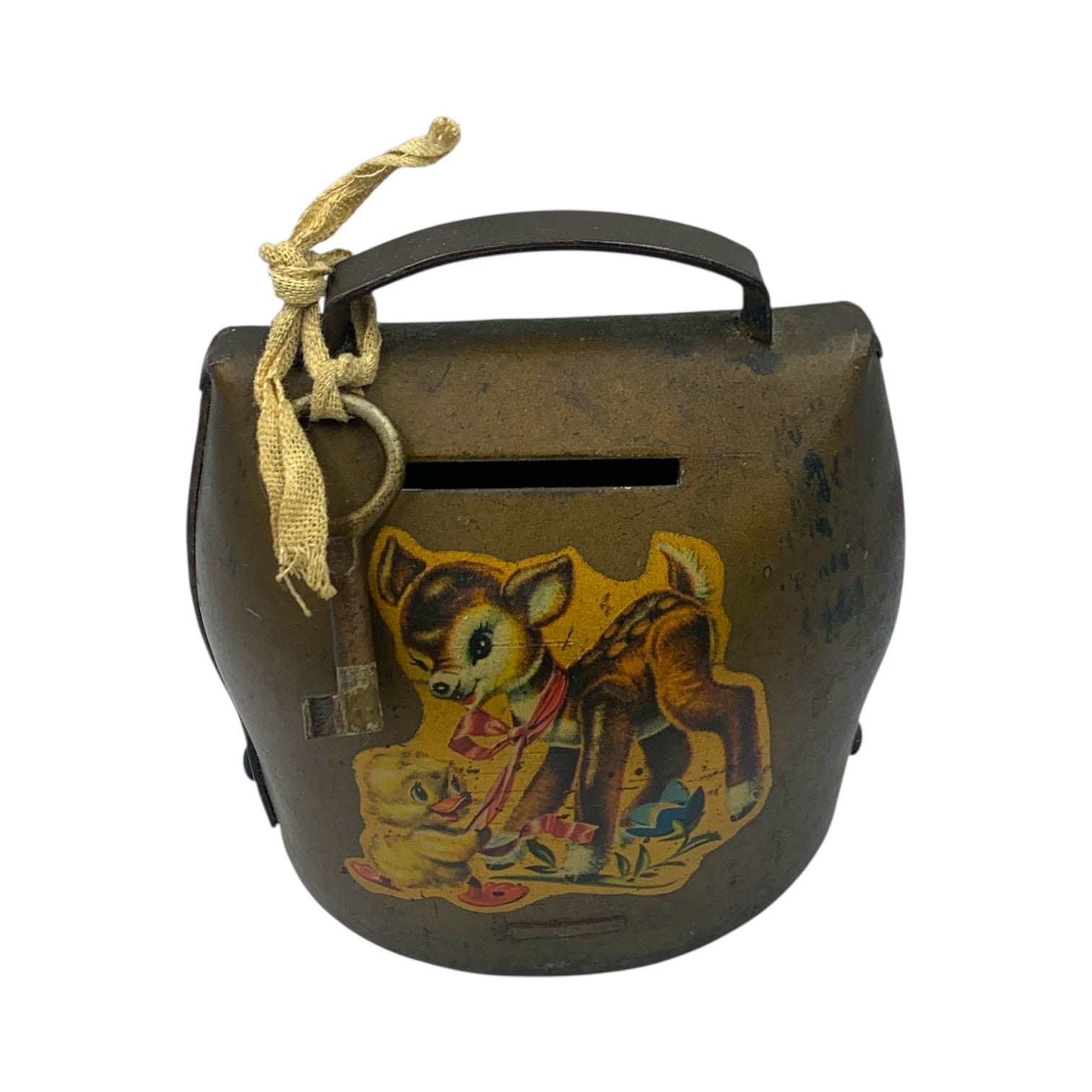 Salvadanaio vintage anni 80 a forma di campanella con decoro Bambie. Altezza 11 cm