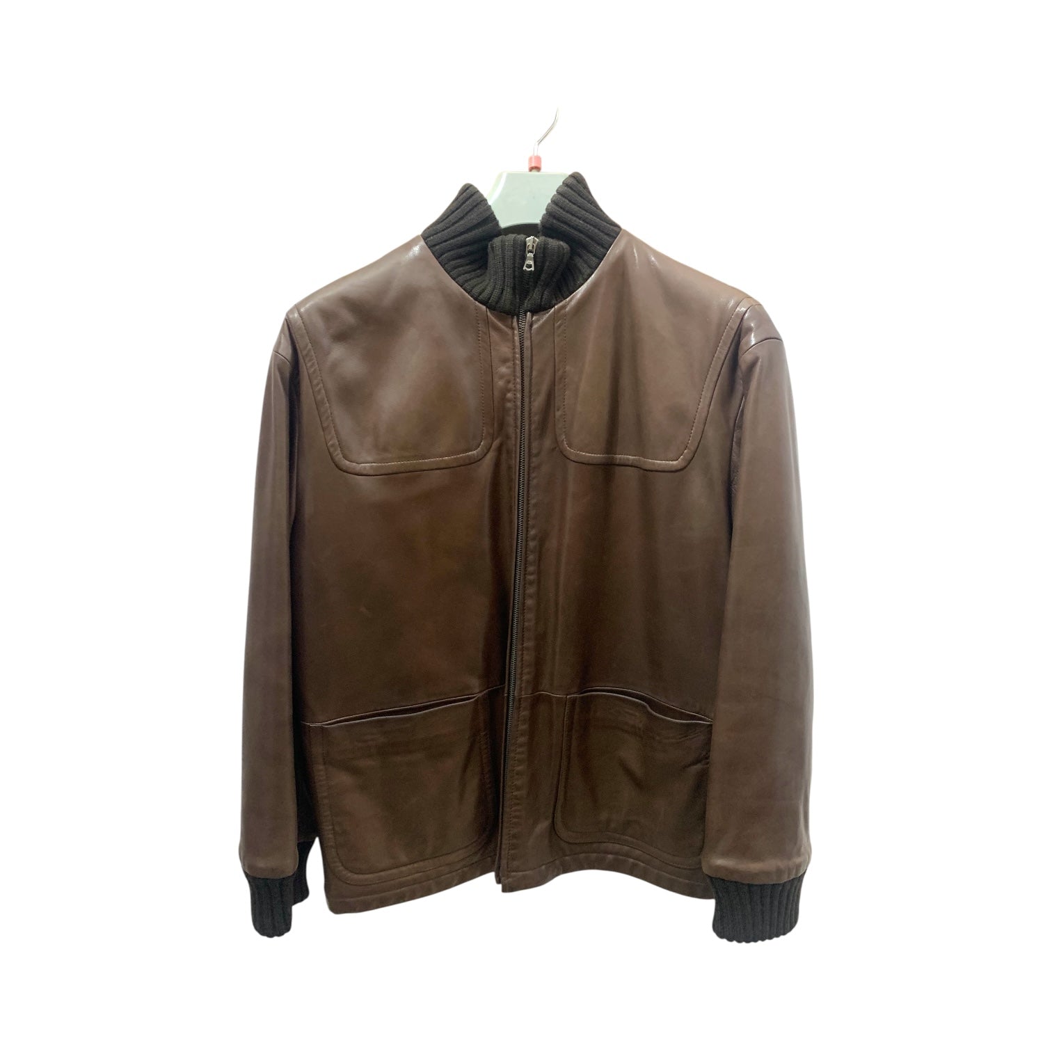 Giacca Uomo Vintage marca Belfe&Belfe in pelle di agnello marrone. Taglia 42