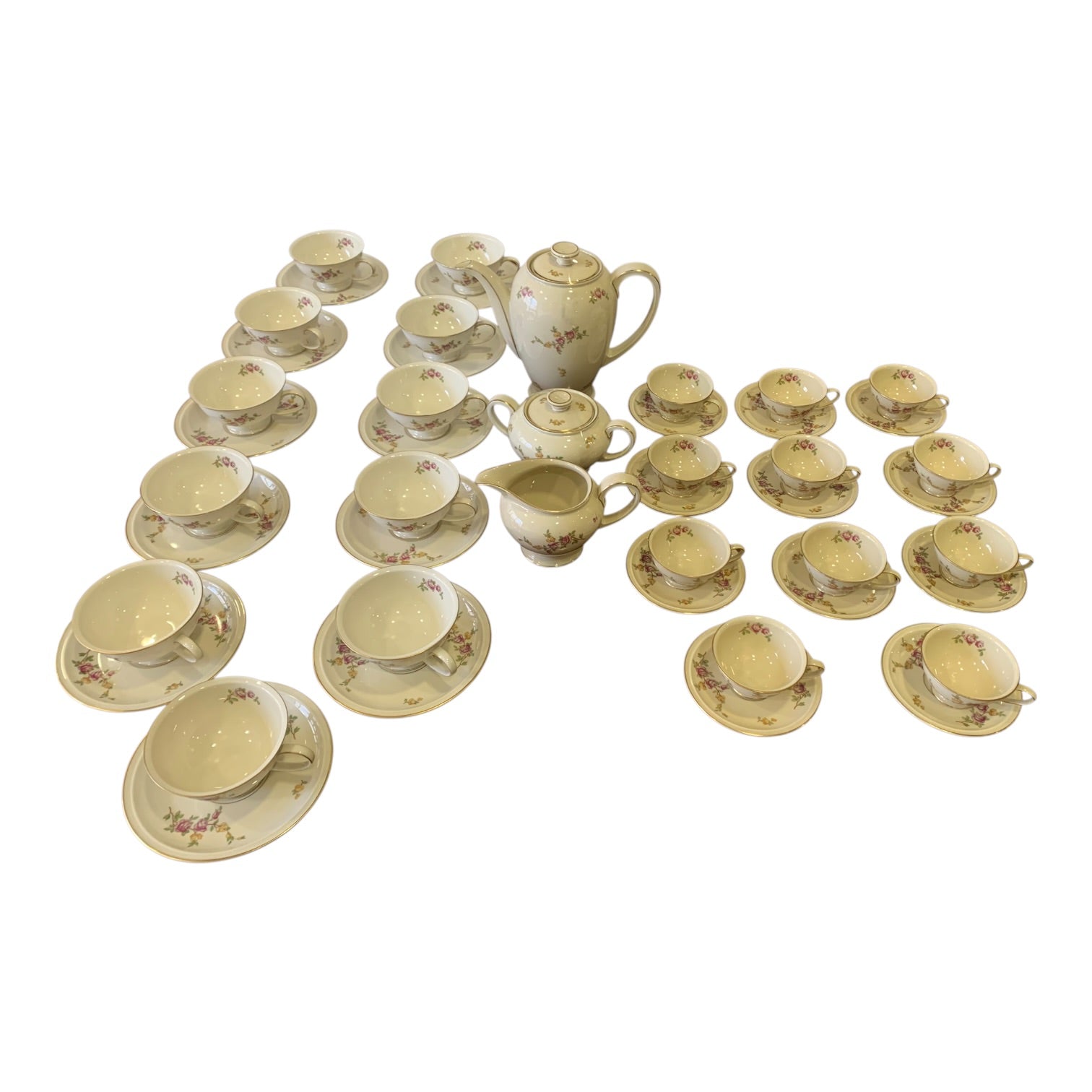 Servizio tazzine caffe e the + pizzeria ceramica firmata Rosenthal Winifred decoro floreale. Il servizio presenta 11 tazzine caffe + piattini e 11 tazze the + piattini una zuccheriera 1 lattiera e 1 caffettiera.