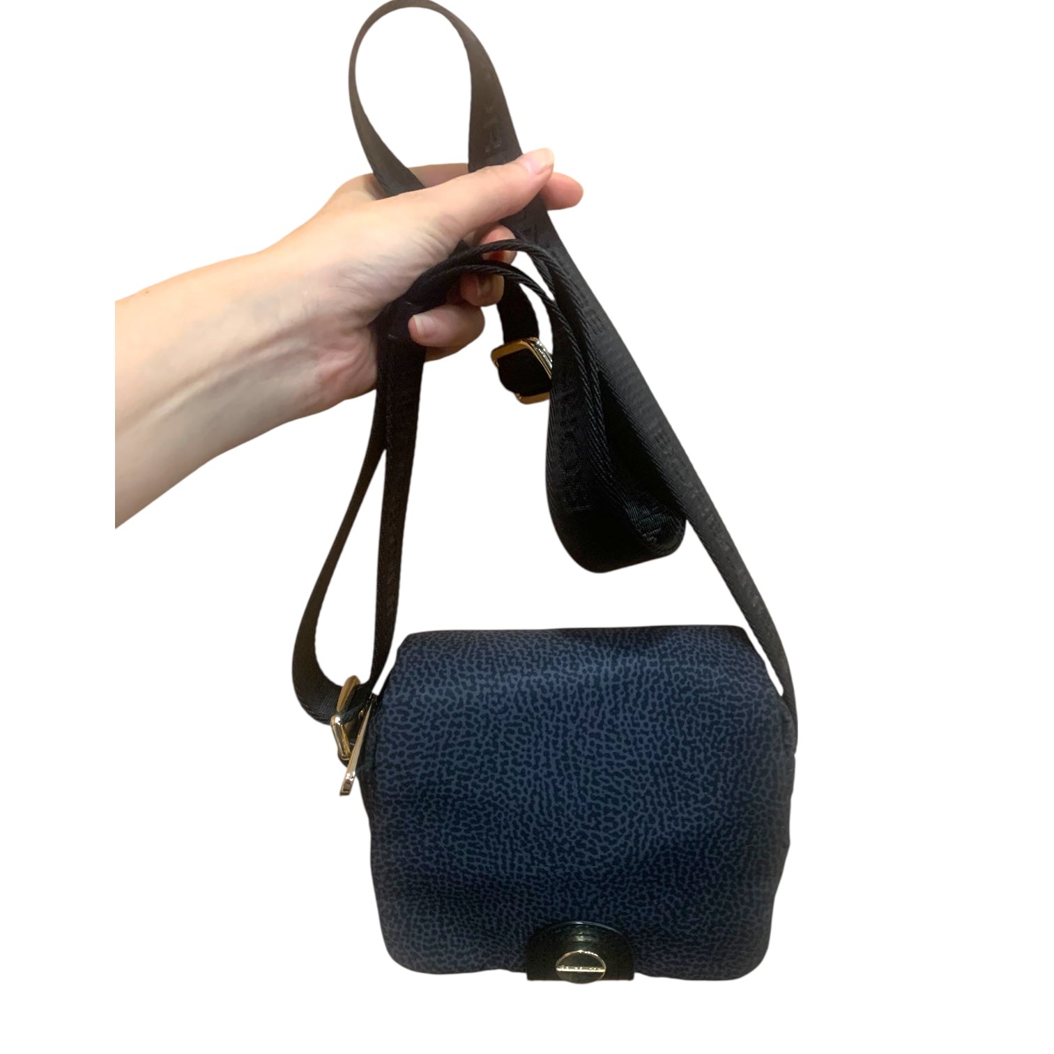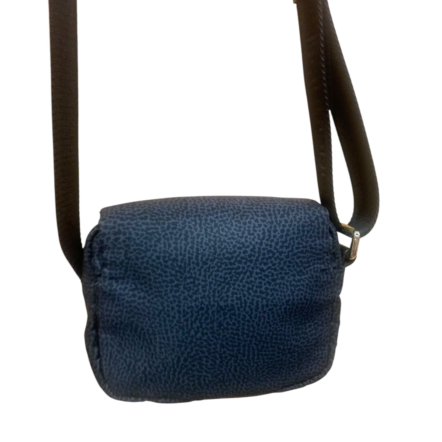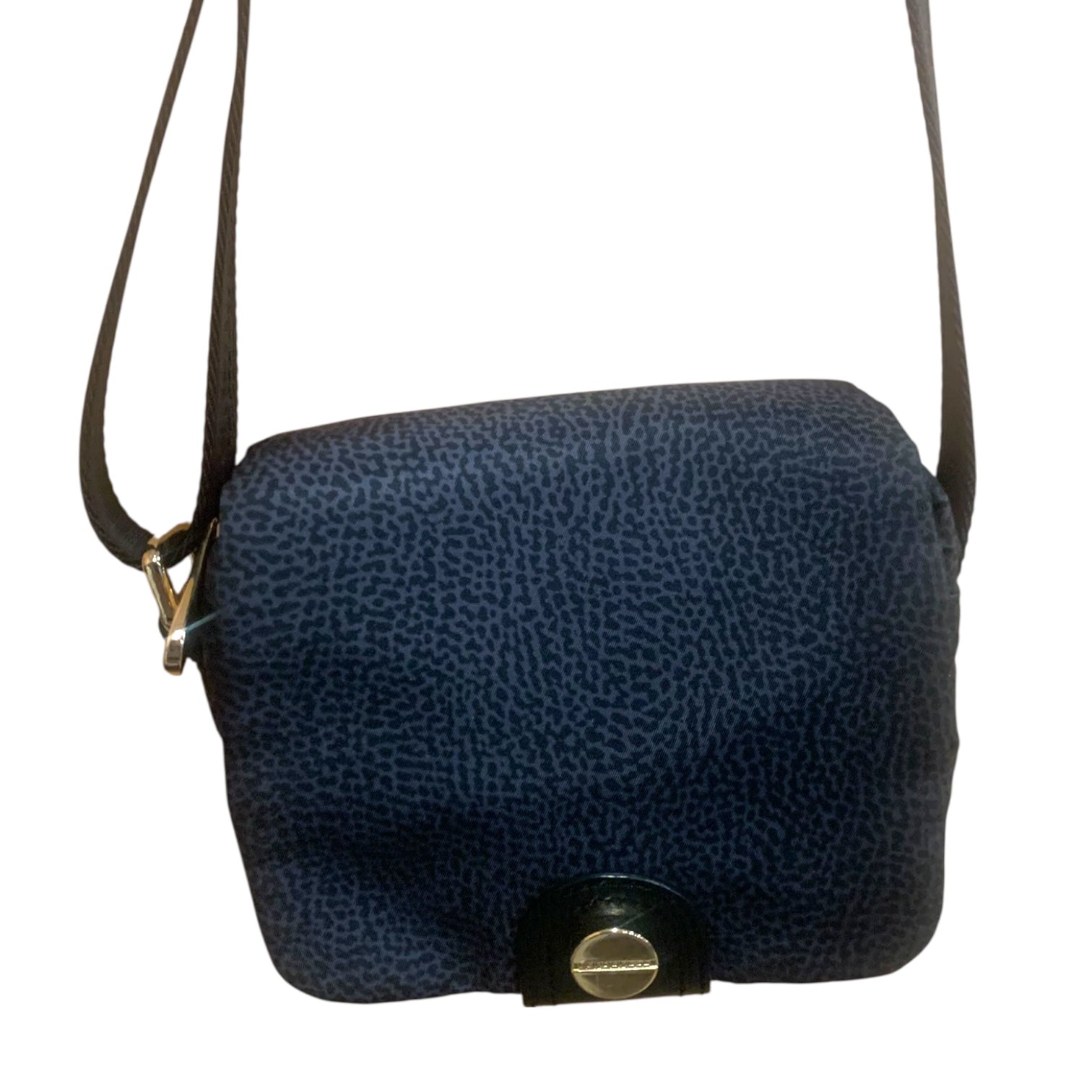Tracolla piccola donna marca Borbonese fantasia occhio di pernice colore blu scuro. Misure: 16x13x4 cm