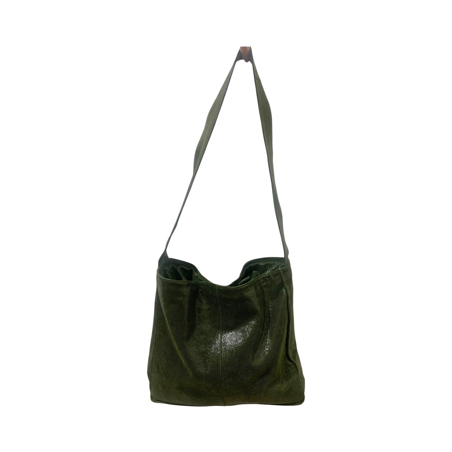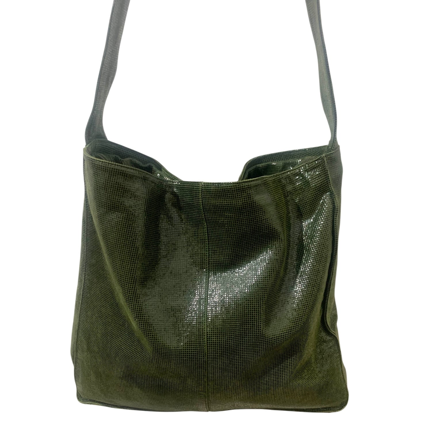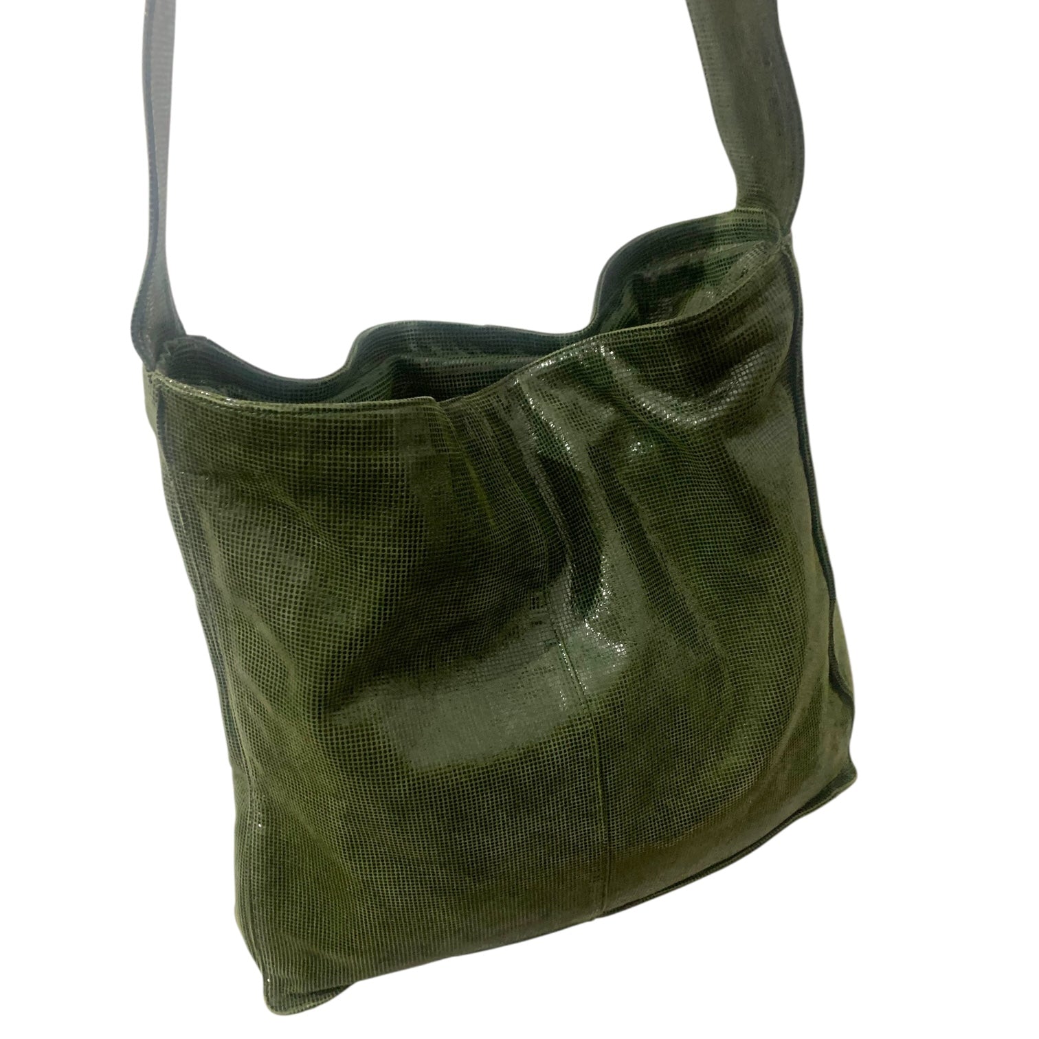 Borsa a tracolla vintage marca Giorgio Armani in pelle verde. Dimensioni 38x35x11 cm