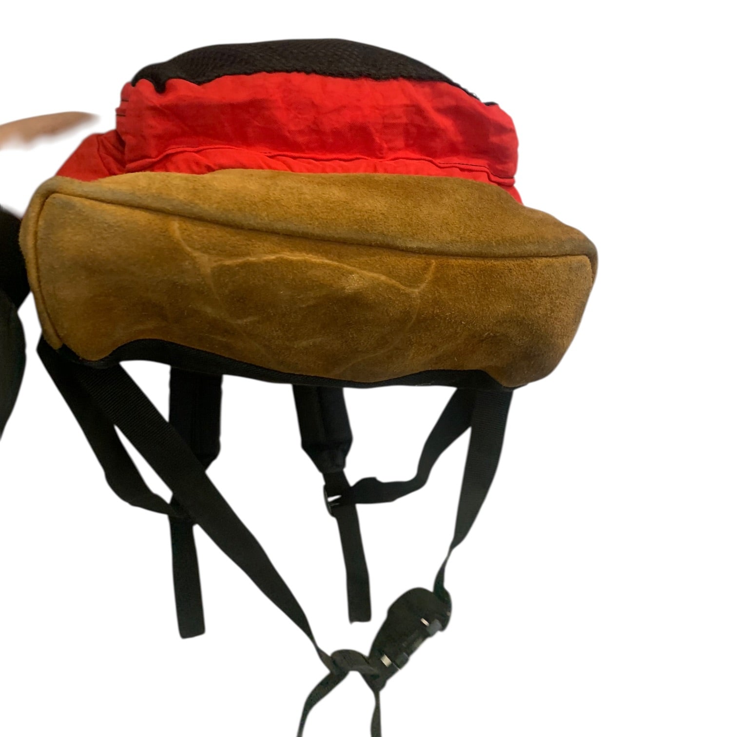 Zainetto vintage marca JanSport in nylon e pelle rosso marrone. Dimensioni 40x29x11. Condizioni generali buone.
