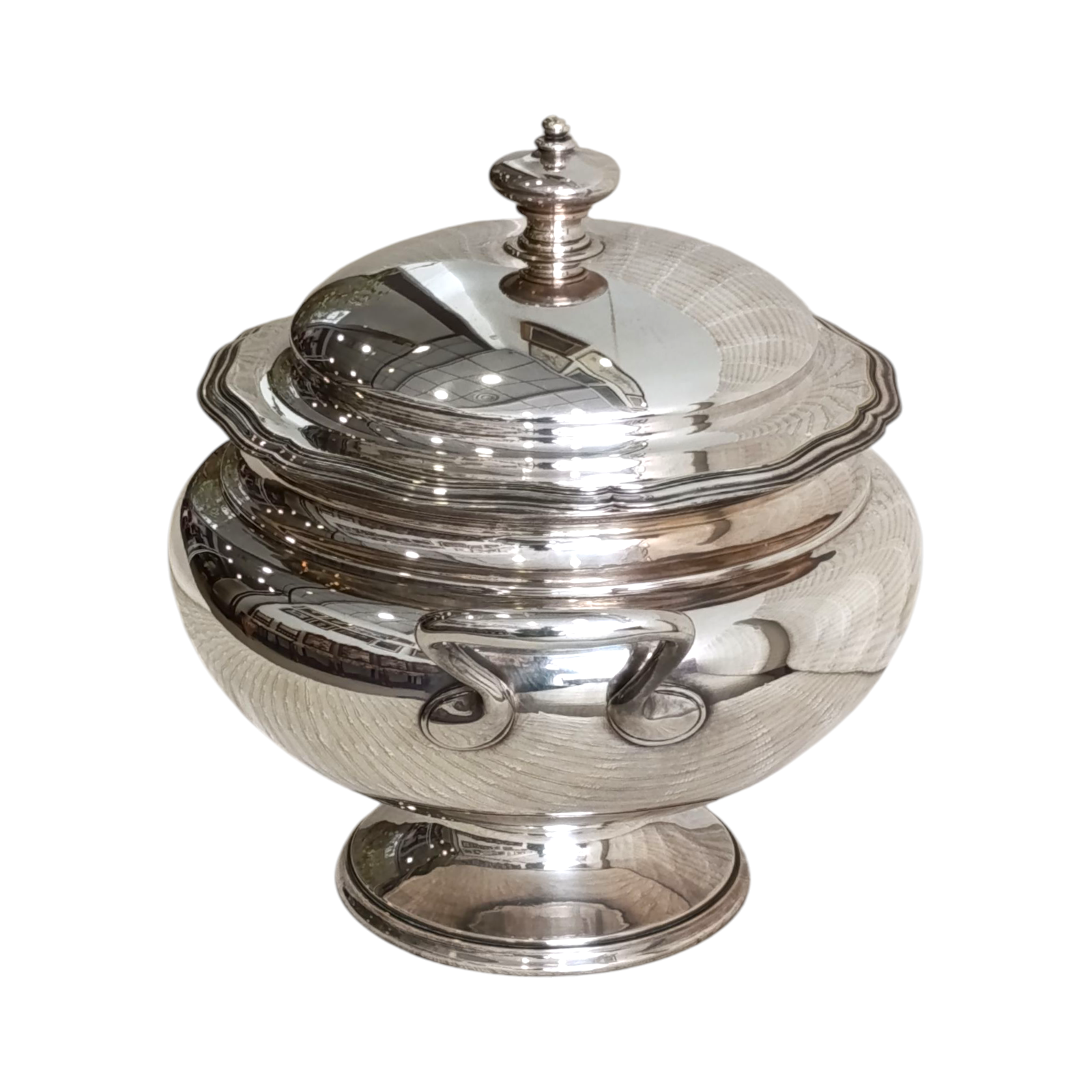 Zuppiera placcata argento, manifattura francese di Jules Rocher, 75 rue des Gravilliers, Parigi, attivo dal 1884 al 1927